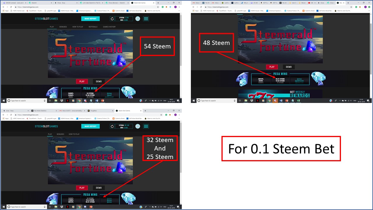 This game is similar to slot machine games in arcades where we spin to hit the jackpot. The same concept. But the call to fame is their incredible multipliers. They can multiply your bet by 216,000%. Which means if you bet 0.1 Steem you can win 216 Steem. I have seen people win 320 Steem. How cool is that?