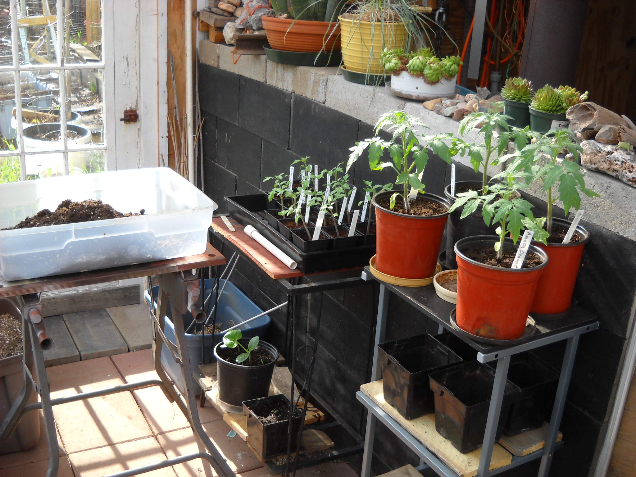 Last week, I was finally able to get more of the tomato plants repotted.