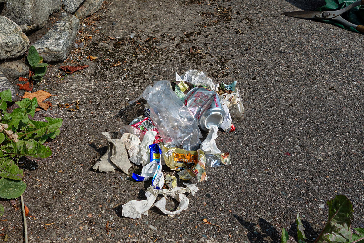What about yourself, how much garbage you find in your garden and also if you also have to work hard to fight the weed.