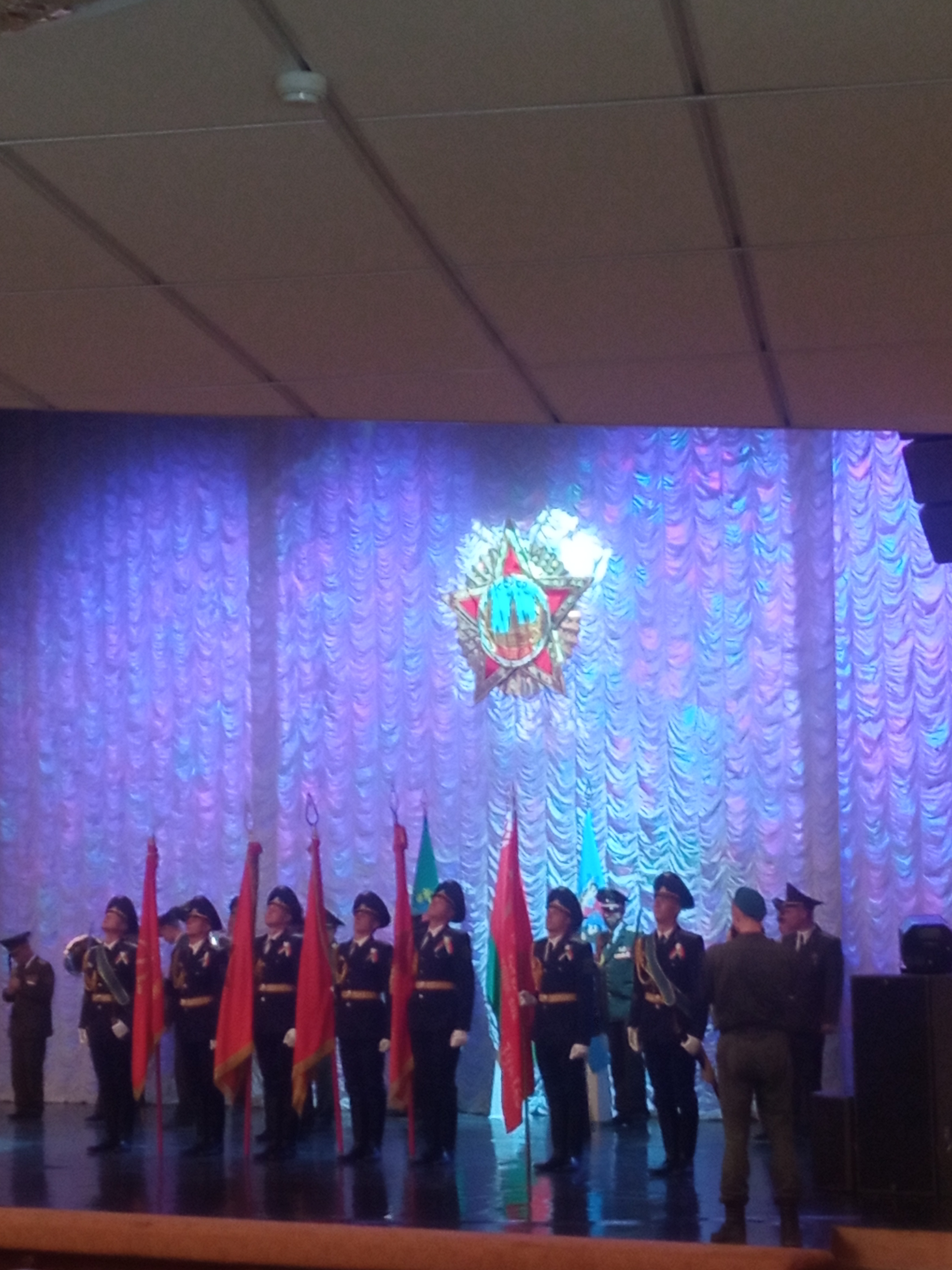Второй день находимся в областном центре. Сегодня состоялся концерт. В концертный зал мы пришли к 12.00 часам, несмотря на то, что начало концерта в 15.00 часов. Торжественное мероприятие началось с выхода почетного караула и выступления председателя Витебского облисполкома с поздравления всех со всенародным праздником - Днём Победы!.