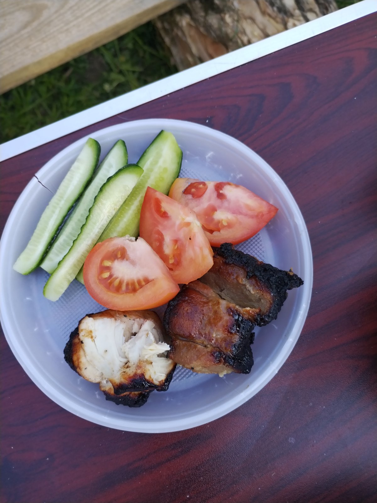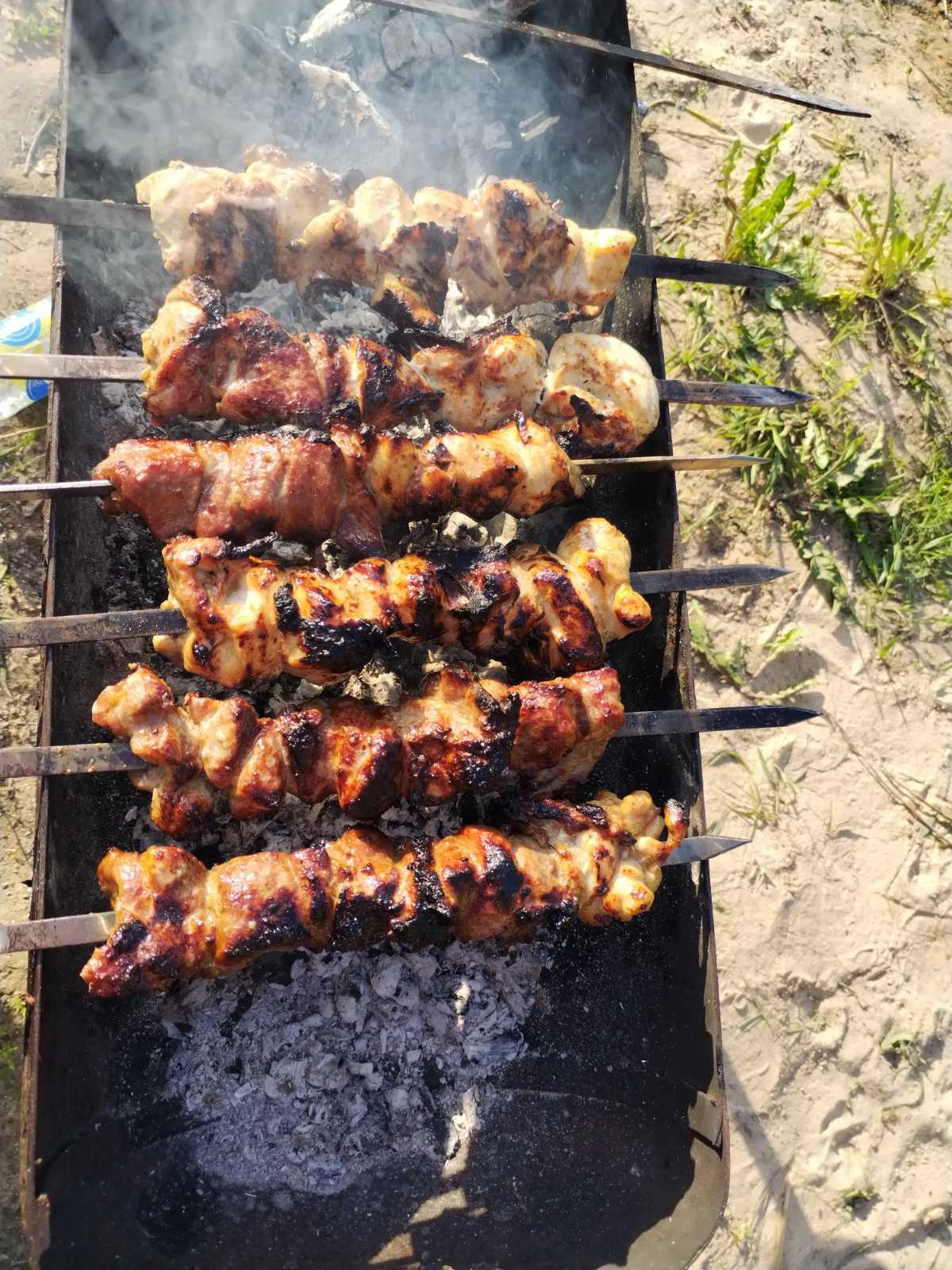 С собой захватили маринованное мясо для шашлыка. Пообедать на природе после работы милое дело.