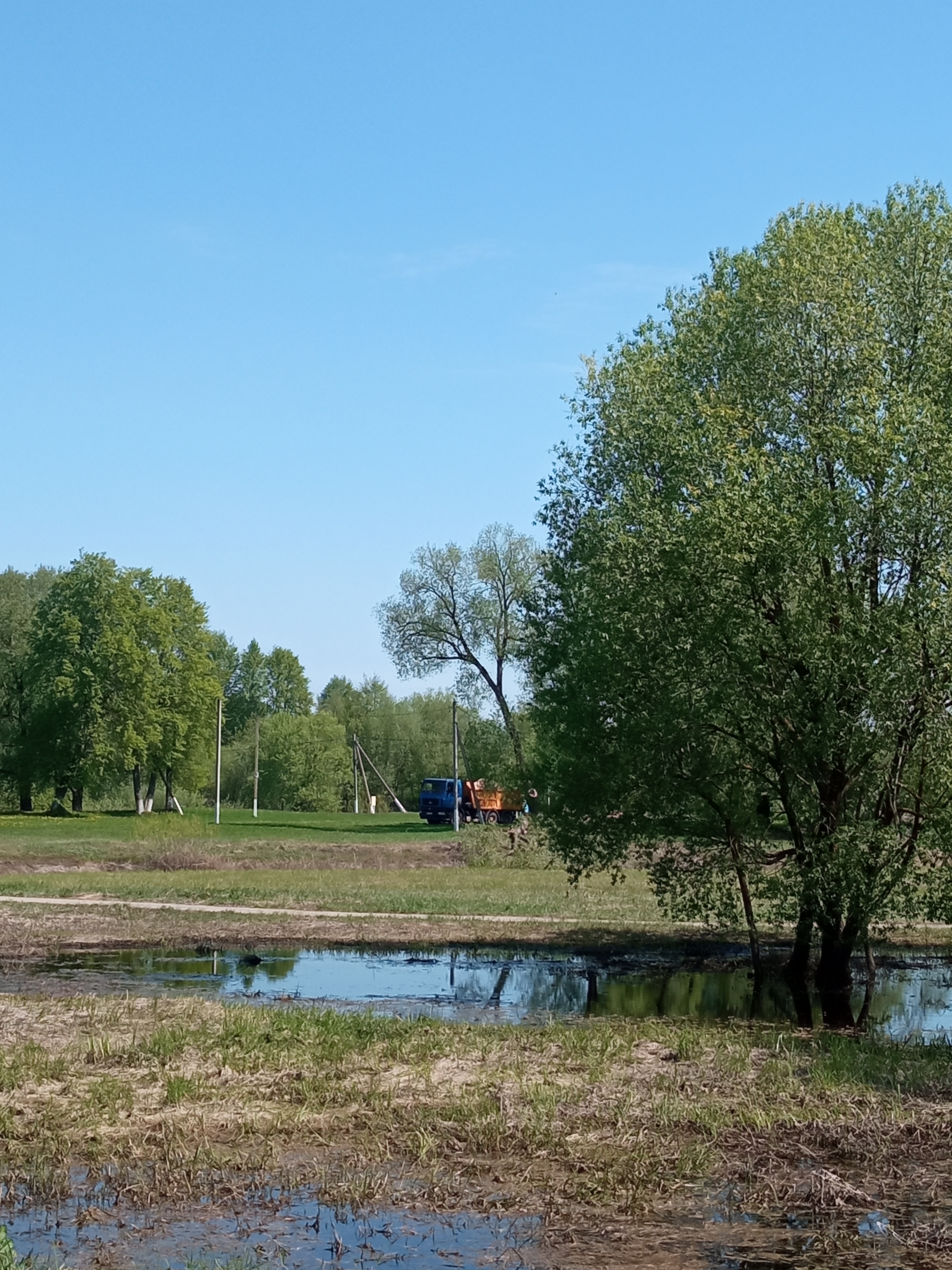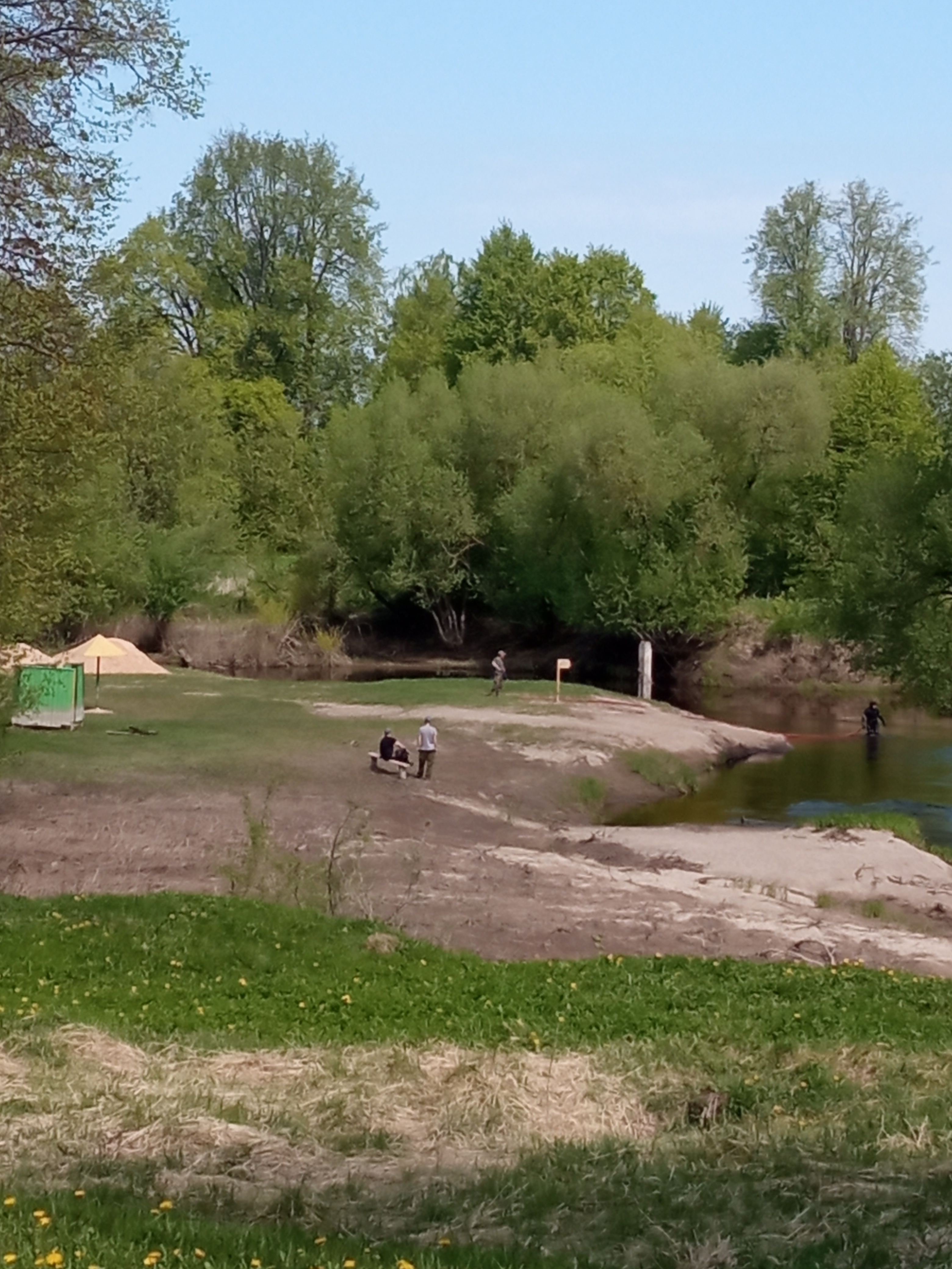 Сегодня у мужа выходной, решили потрудиться на участке. На участок добирались через городской пляж. На пляже происходило, что-то необычное. Вижу впервые, что нашему пляжу уделяется в этом году такое внимание. Убиралась береговая зона, чистилась от коряг и камней дно реки.