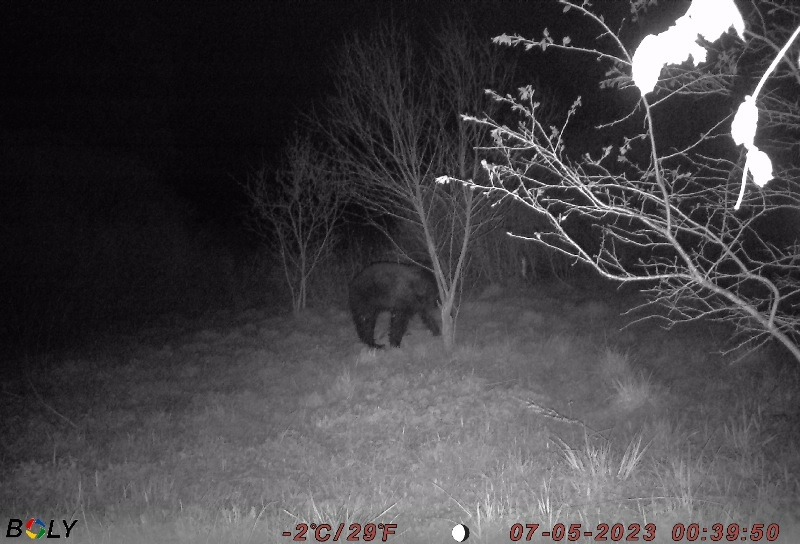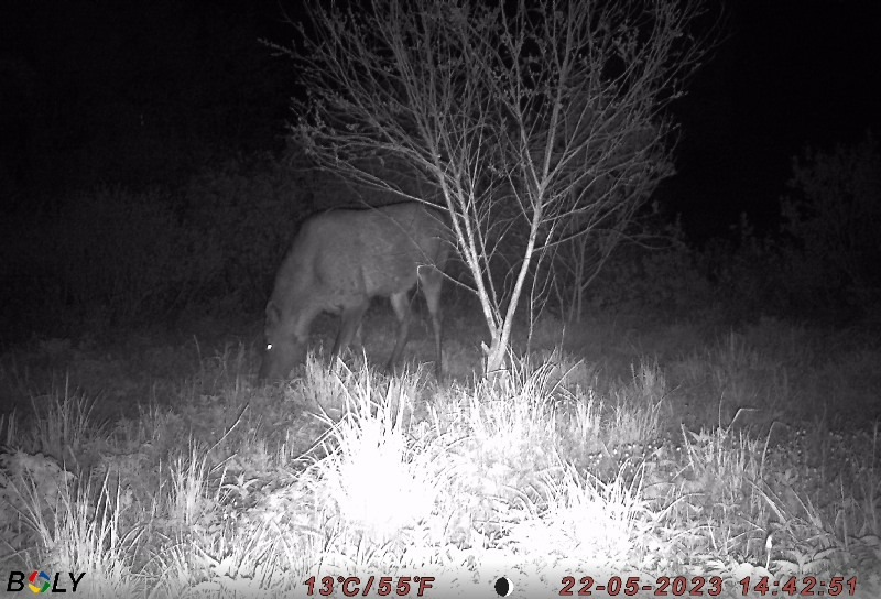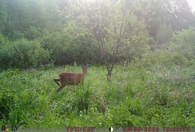 Видимо что-то напугало зверя, что он бегал из стороны в сторону недалеко от нашего города. Последнее время частенько встречаем лесных гостей. Видимо браконьеры вывелись и в отросли охоты на диких животных навели порядок. Знакомый мужа охотник, частенько сбрасывает фотографии диких животных с фотоловушки.