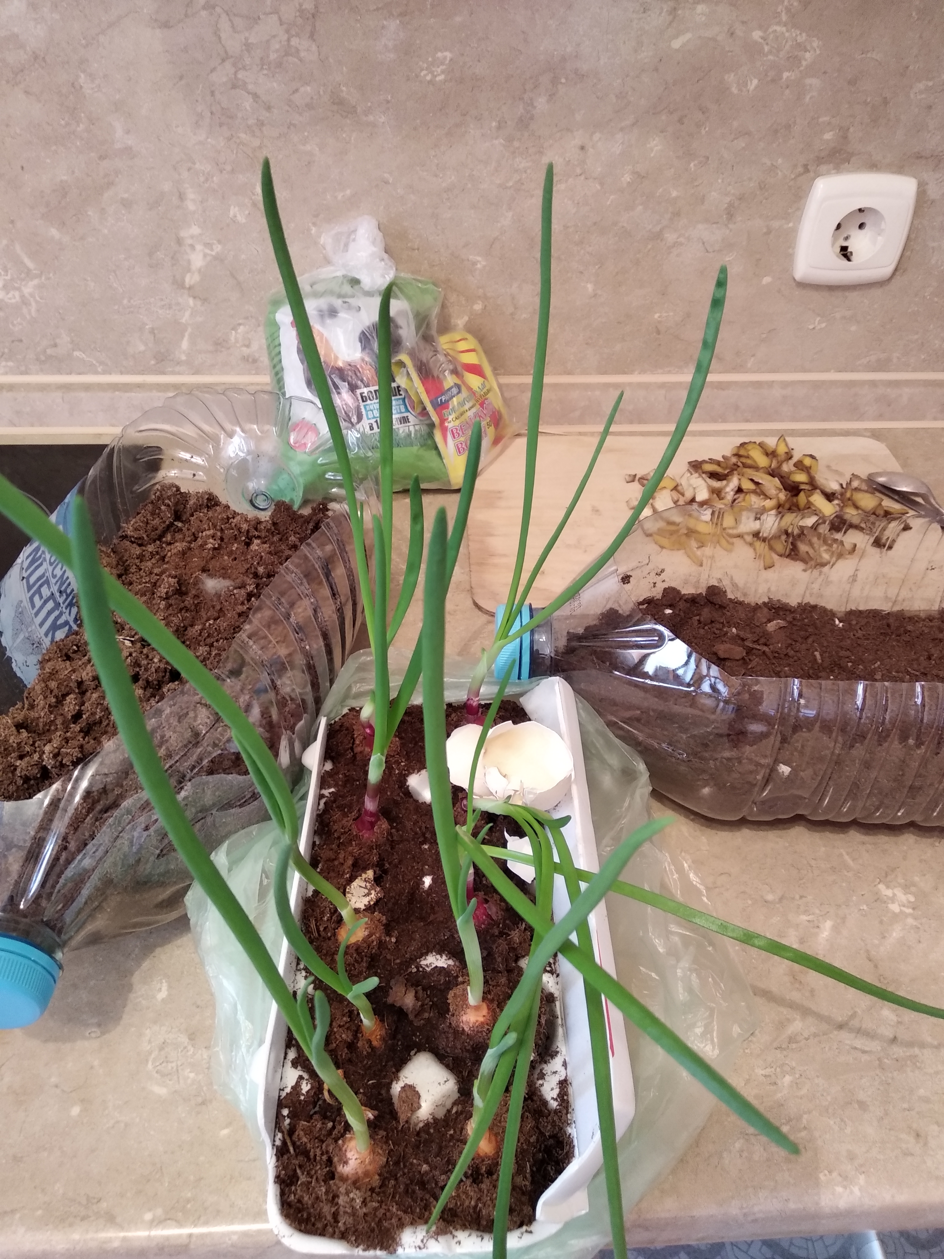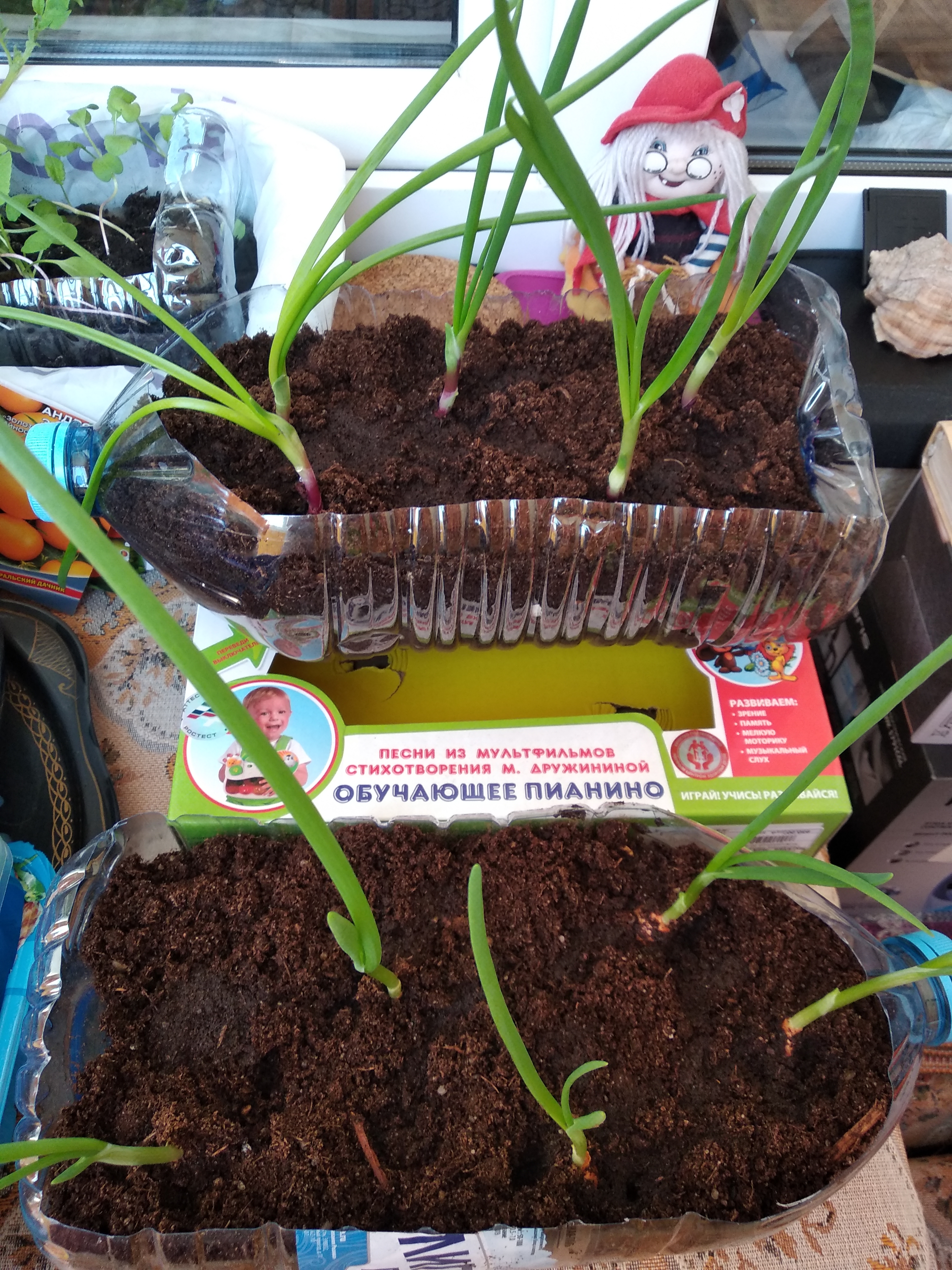 Но потом я хорошо подумала и решила, что я же могу рассадить луковую рассаду, у меня есть большие пластиковые коробки. И дать возможность луку расти не только на перо, но и на репку, т.е. вырастет себе нормальный лук - головка.