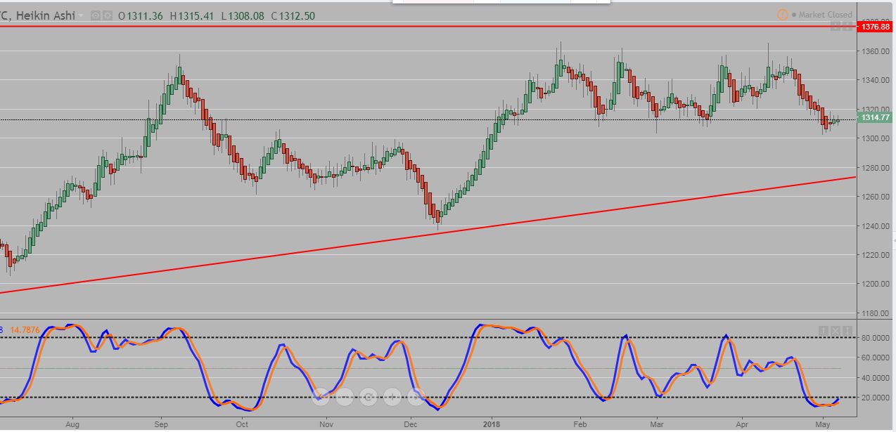 On the weekly chart, it is currently printing red heikin ashi bars which depicts the current downtrend.