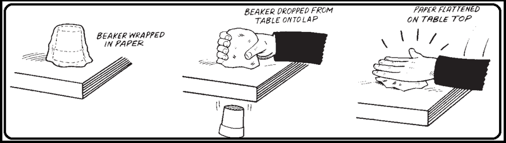 Secret: A piece of paper wrapped around the cup or glass will retain the shape of the cup – even after the magician has secretly dropped the cup into his lap.