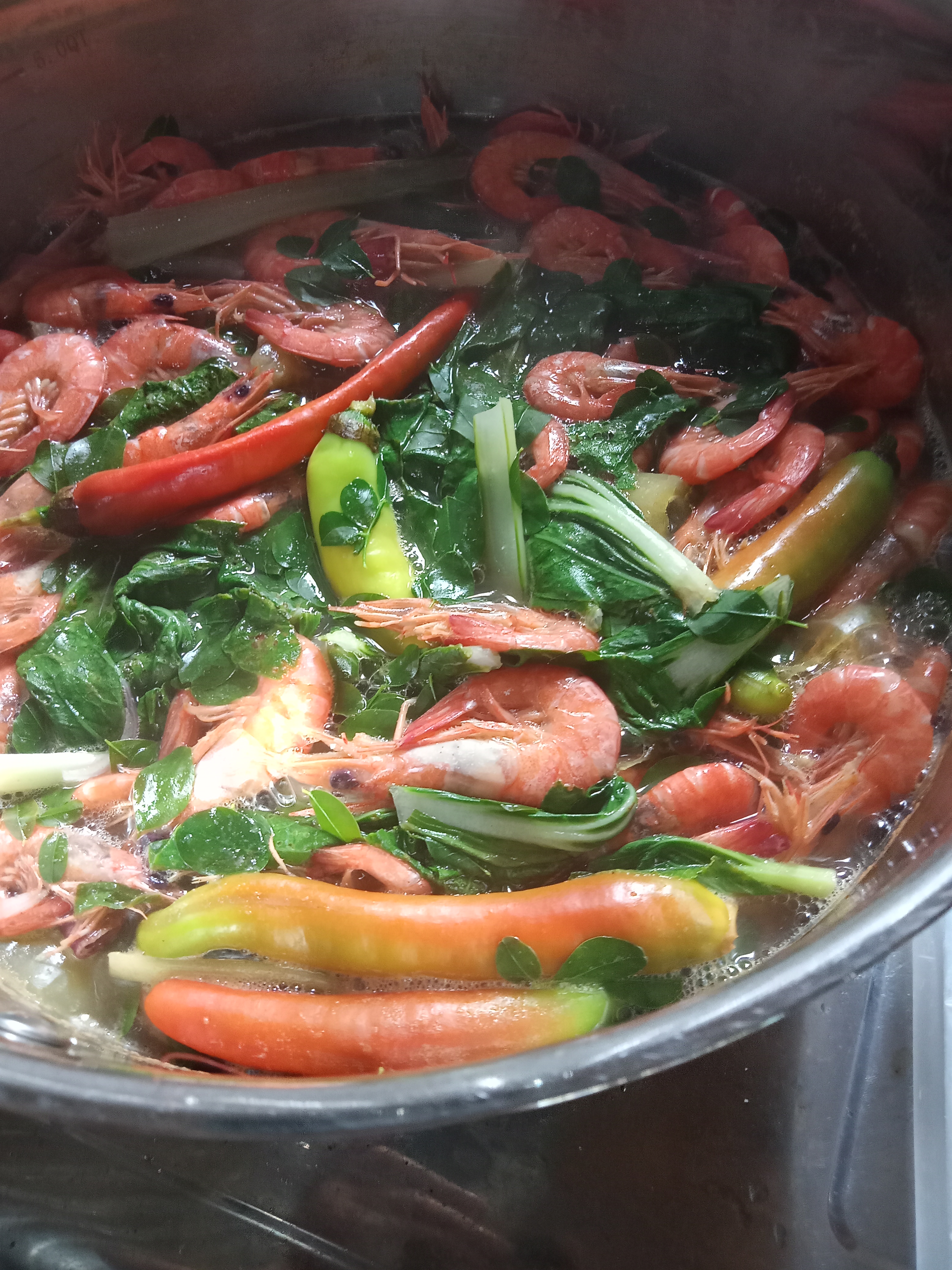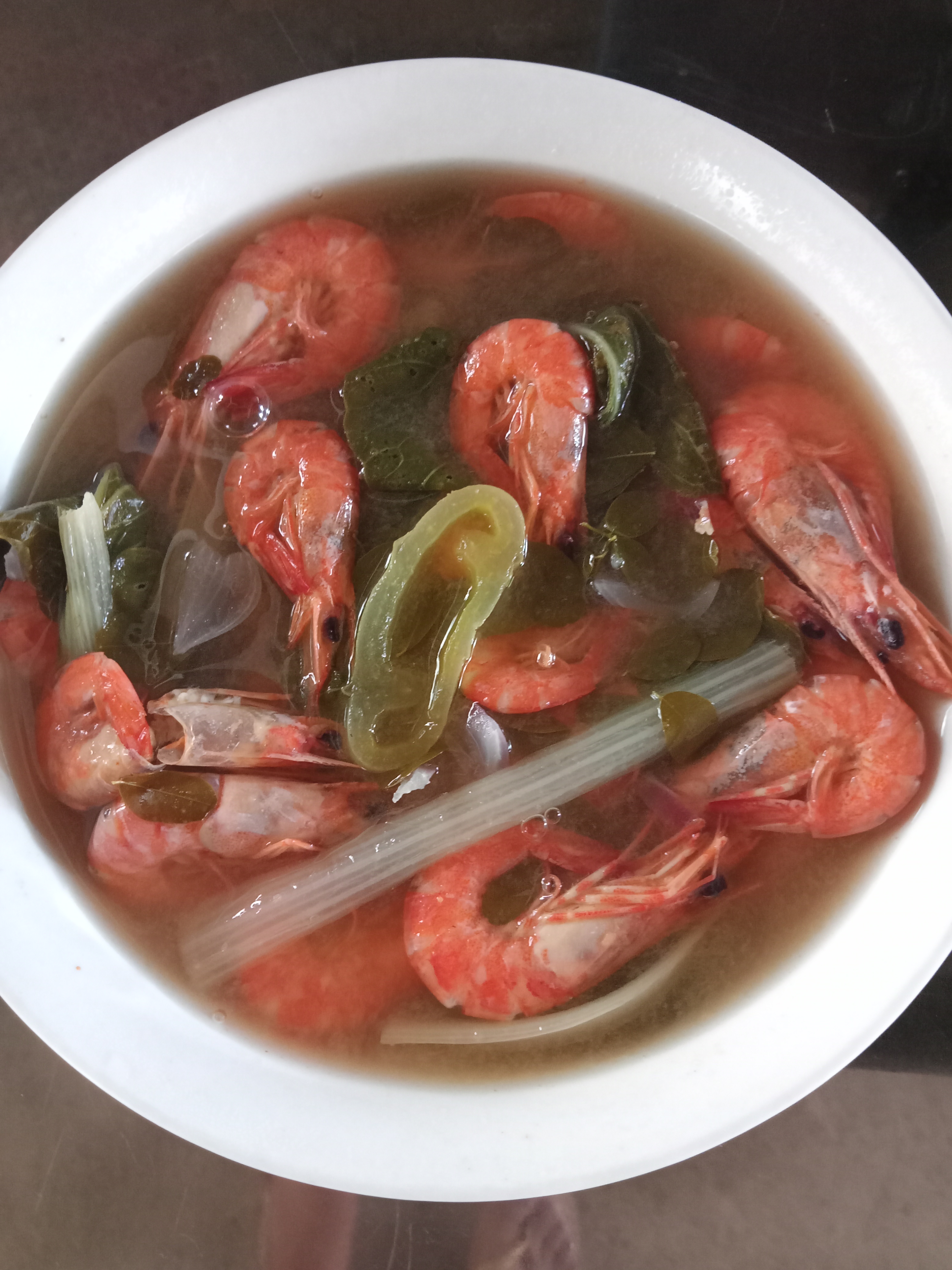 Sinigang na Hipon is a type of Filipino sour soup, wherein shrimp is used as the main ingredient. This dish also includes a variety of vegetables such as radish, snake beans, okra and eggplant. But i just put pechay/snow cabbage.