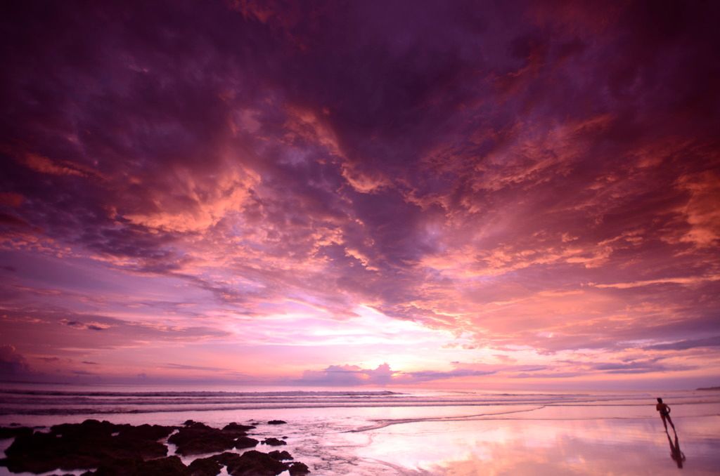 I see a lot of really nice sunsets here in Costa Rica, but I could tell this one was going to be really exceptional. I was in the kitchen and I could see the clouds light up. I hopped on the moto and hauled butt to the beach (Playa Avellanas), grabbed the camera and a Graduated ND filter to put on the Sigma 10-20 and got this shot. The filter is a cheapo and it casts a weird hue, but in this case I like the way it turned out.