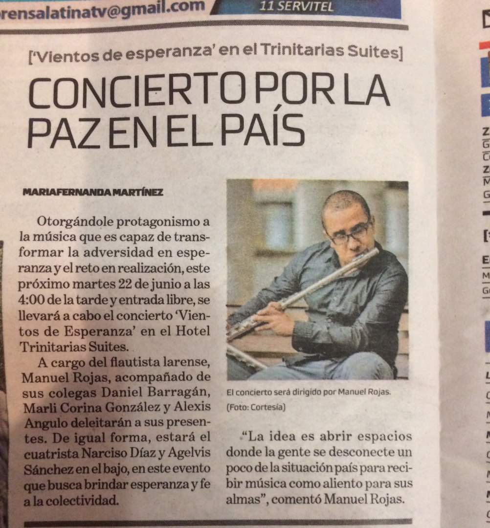 De igual manera, antes de terminar esta cadena de publicaciones, prometemos revelarles algunas de las sorpresas de nuestro concierto Vientos de Esperanza. ¿Qué otros músicos estarán participando en esta actividad tan especial? Eso lo sabrán después de los cortes comerciales.