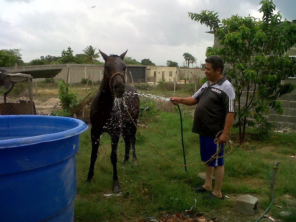 Good morning friends this gentleman is my dad is an exemplary man good father, good son and very good grandmother; he loves horses he has always had one as a pet he likes very much to bathe them and feed them.