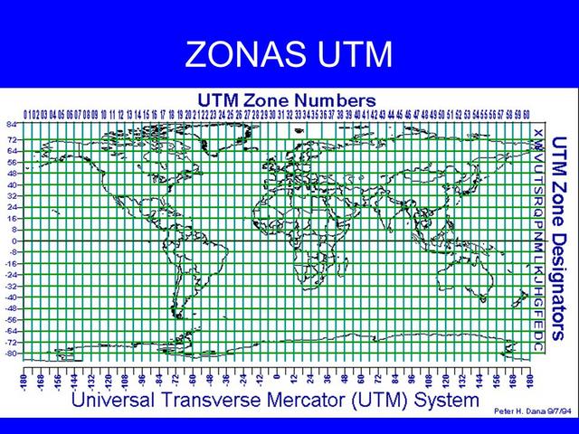 El cuadriculado Mercator Transversal Universal (U.T.M) está diseñado para USO mundial entre 80º latitud Sur y 84" latitud Norte. Empezando en el meridiano de 180" de longitud y progresando hacia el Este, el globo se divide en zonas angostas llamadas USOS. Cada una de 6º de longitud de ancho y numerados desde uno (1) hasta (60). Cada zona, siendo 6º de ancho.