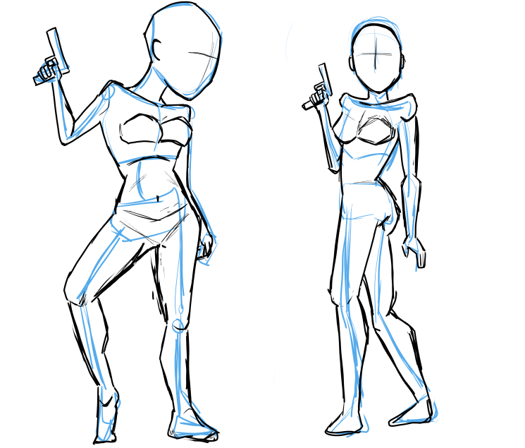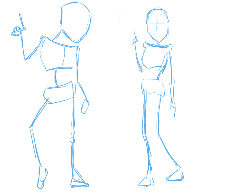 I started just like the image suggested, drawing a simple sketch. Although I say simple, it's still kinda difficult for me to get the proportions right. For example the body on the left has a REAAALLY big head, and then the rest of the body parts are not proportionally correct... is something I still have to work on.
