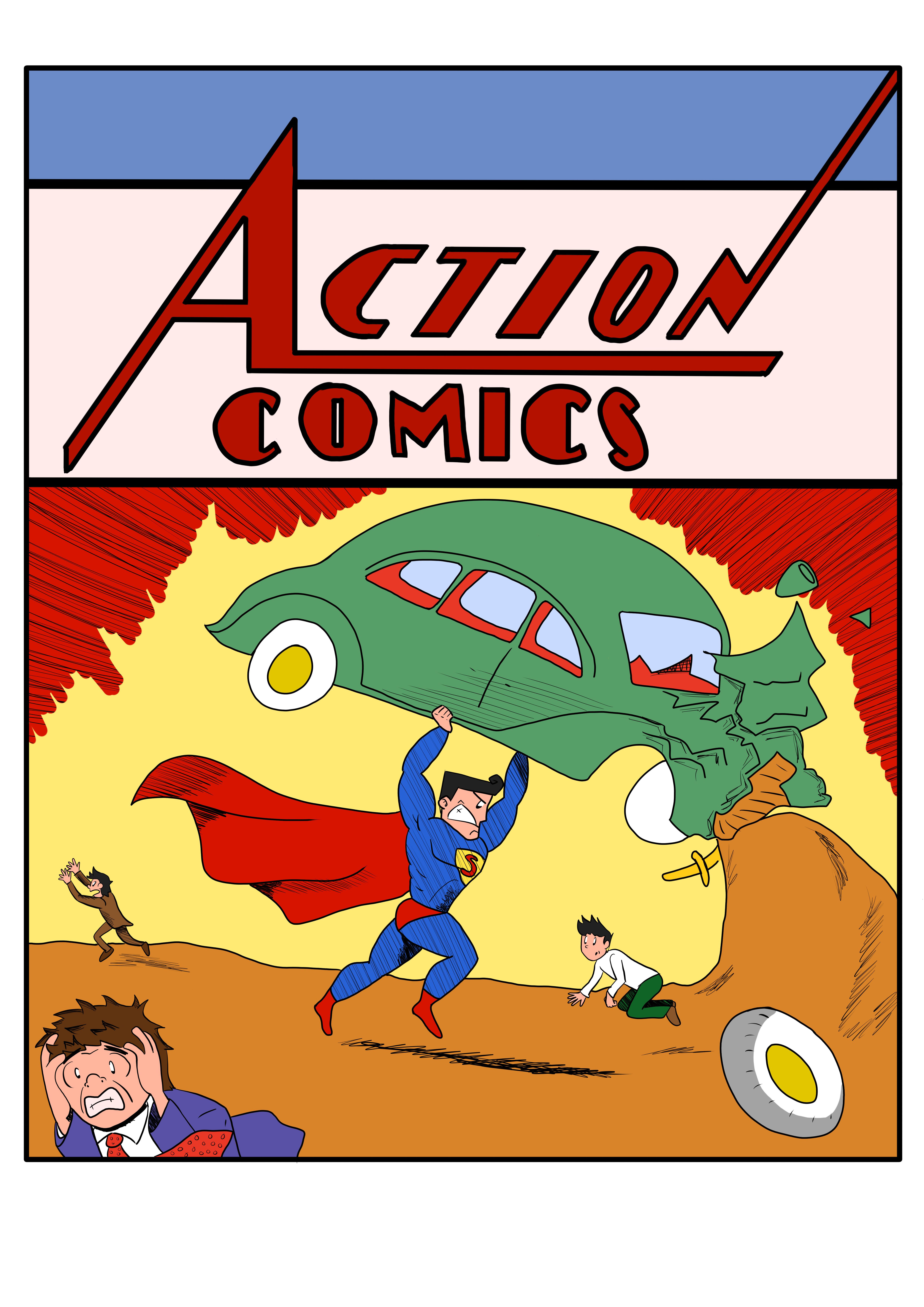This first time it's a free theme. The only guideline is to follow the same concept of the Superman 1st issue cover. You can re draw it as it is, or you can replace Superman with someone else, or you can replace the car with another object. I'll leave that up to you for this first round.