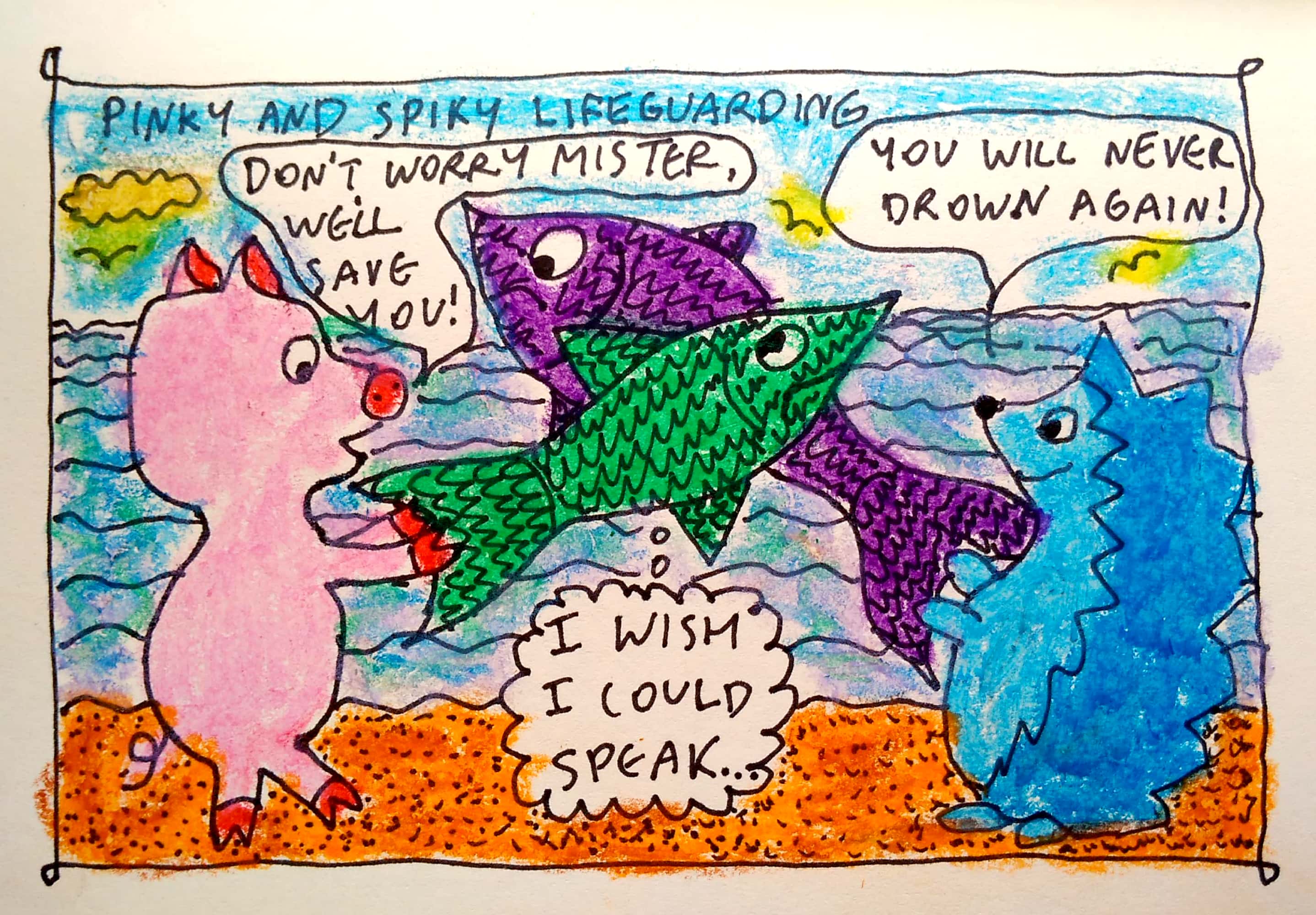 Here is my entry: https://steemit.com/steemit-webcomics/@organduo/pinky-and-spiky-lifeguarding-my-entry-for-steemit-webcomics-funny-comic-strip-contest-week-16