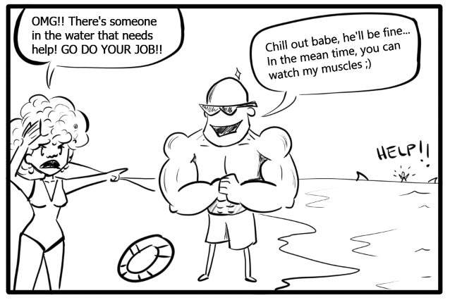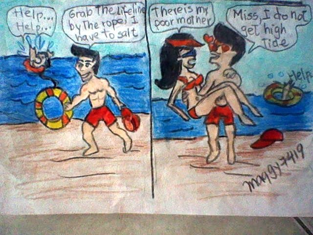 Make a funny comic featuring life guards. With summer hitting the north hemisphere, what a better way to celebrate it than with a comic about life guards. This should be an easier subject since there are plenty of content in the internet for funny situations.... you can just watch Baywatch and I bet you'll find something funny there haha