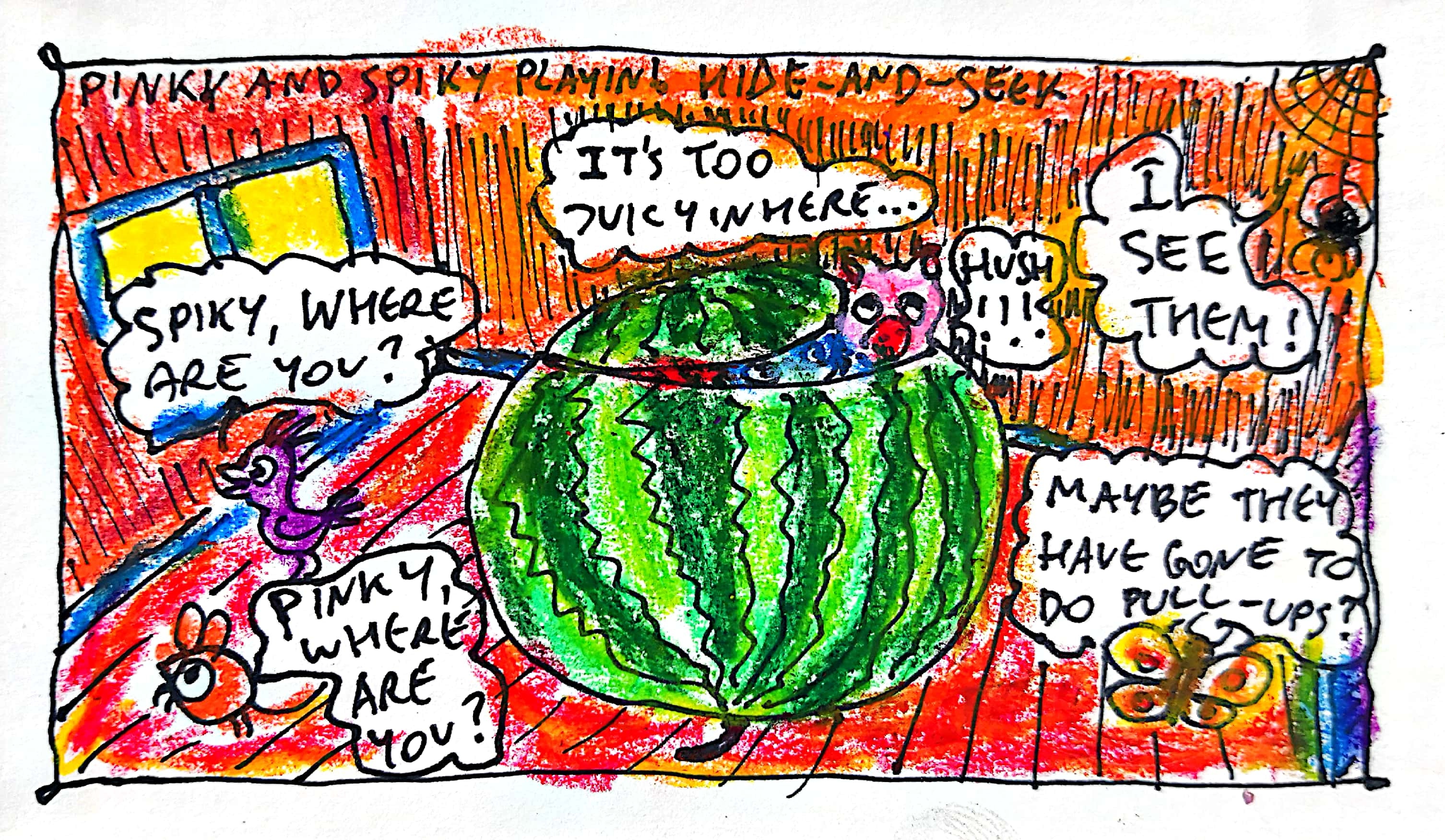 Here is my entry: https://steemit.com/steemit-webcomics/@organduo/pinky-and-spiky-playing-hide-and-seek-my-entry-for-steemit-webcomics-funny-comic-strip-contest-week-22