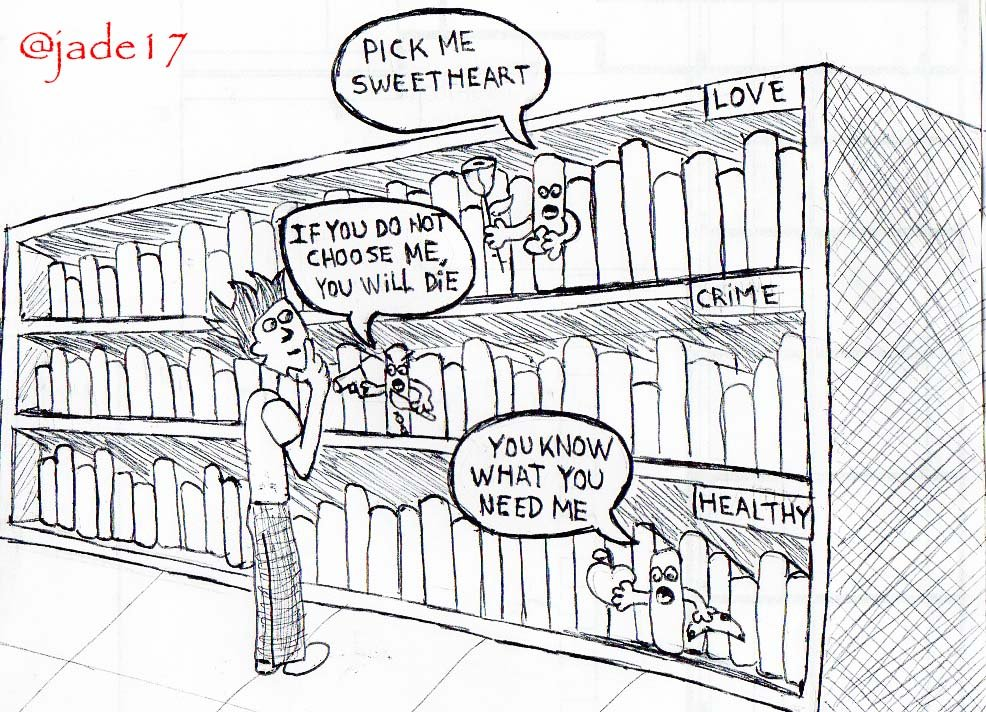 1st Place: @jade17: for comic Choosing a book