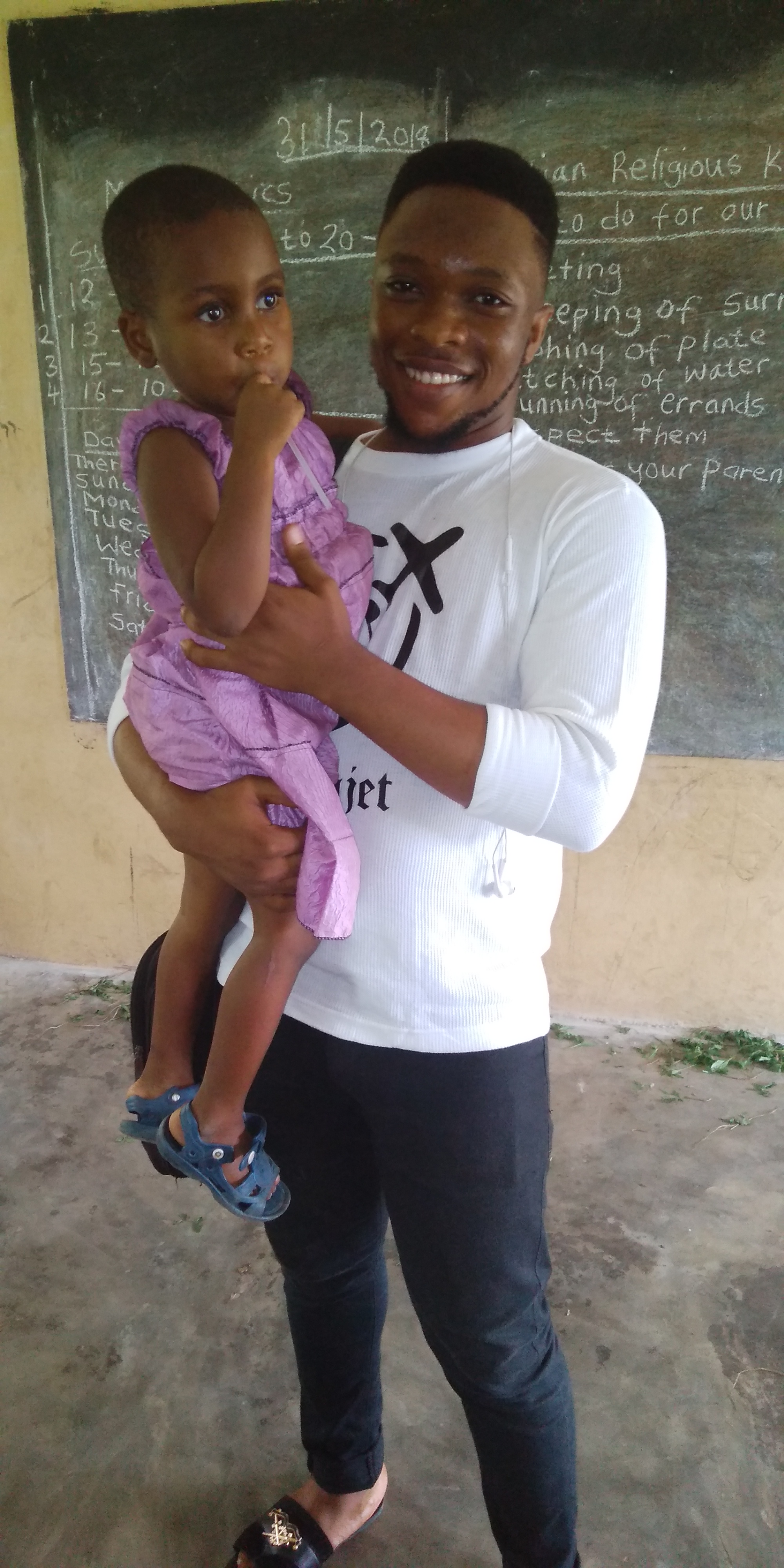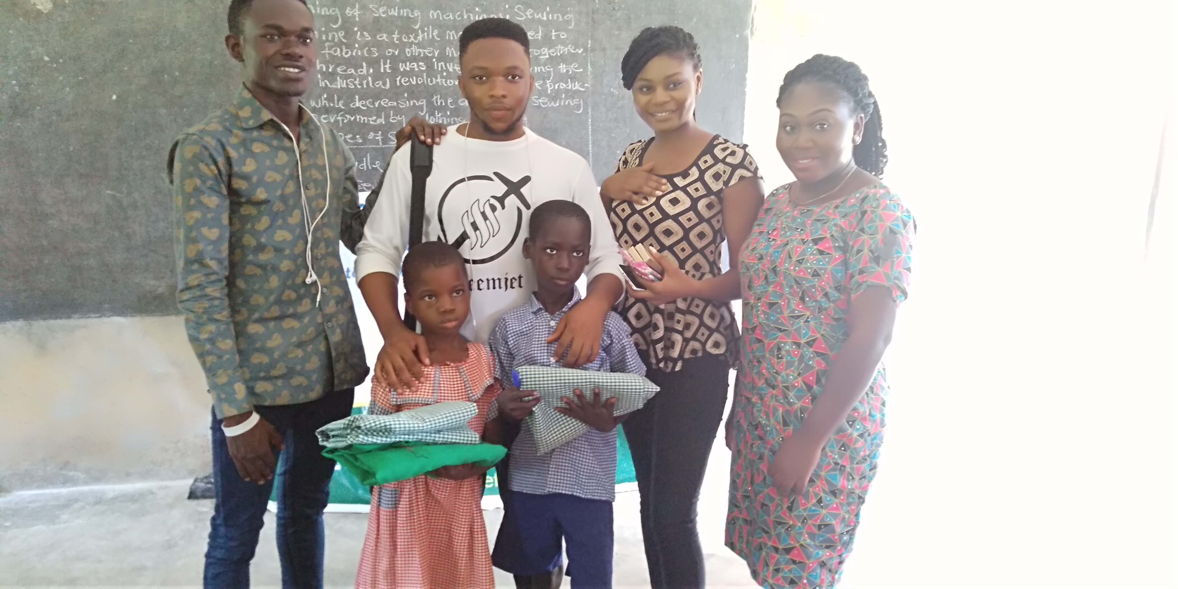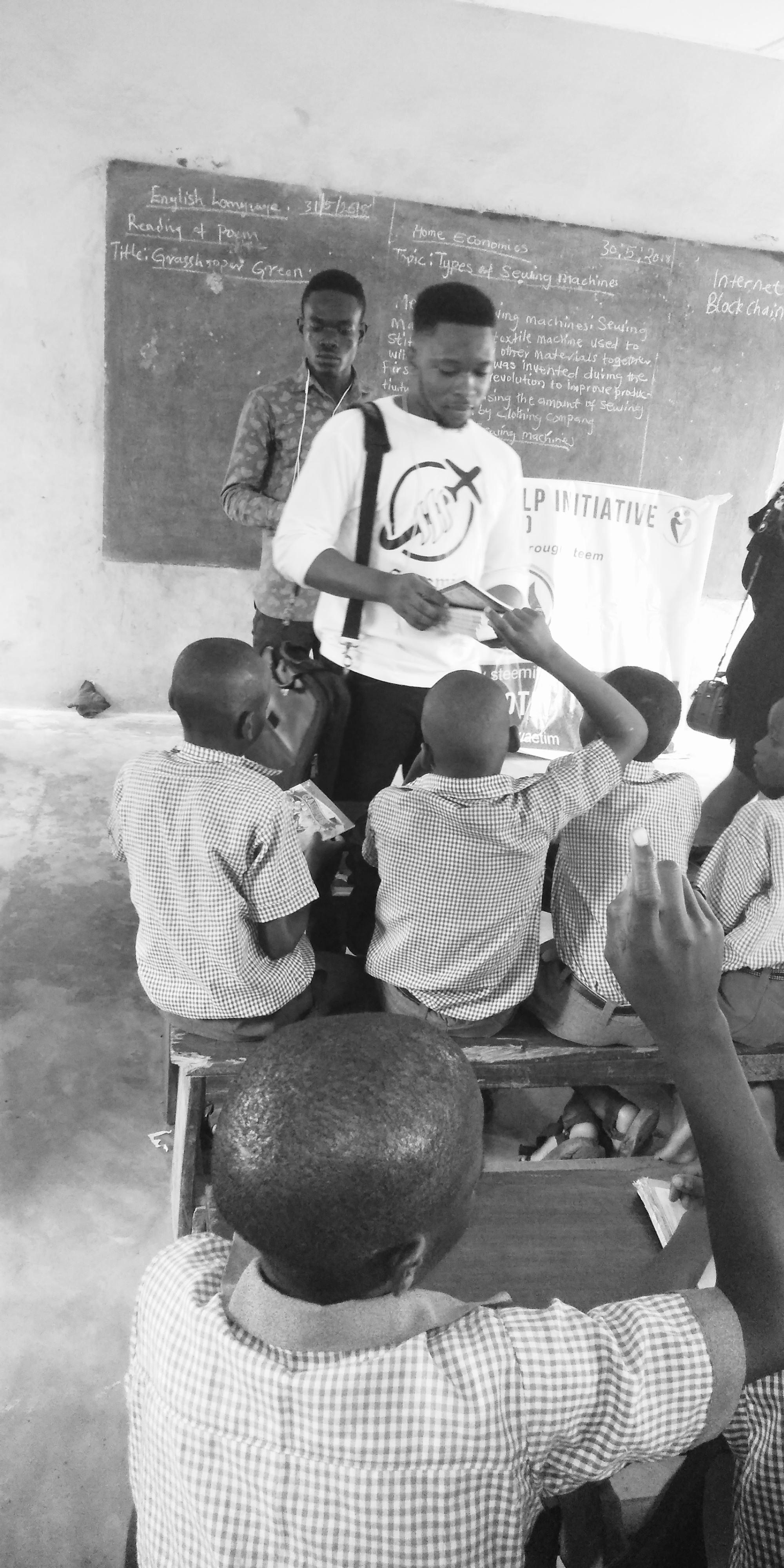 We gave the pupils writing materials( which includes, books, pencil, pen, ), clothings for those without uniforms and snacks. We also made time to laugh and play with them.