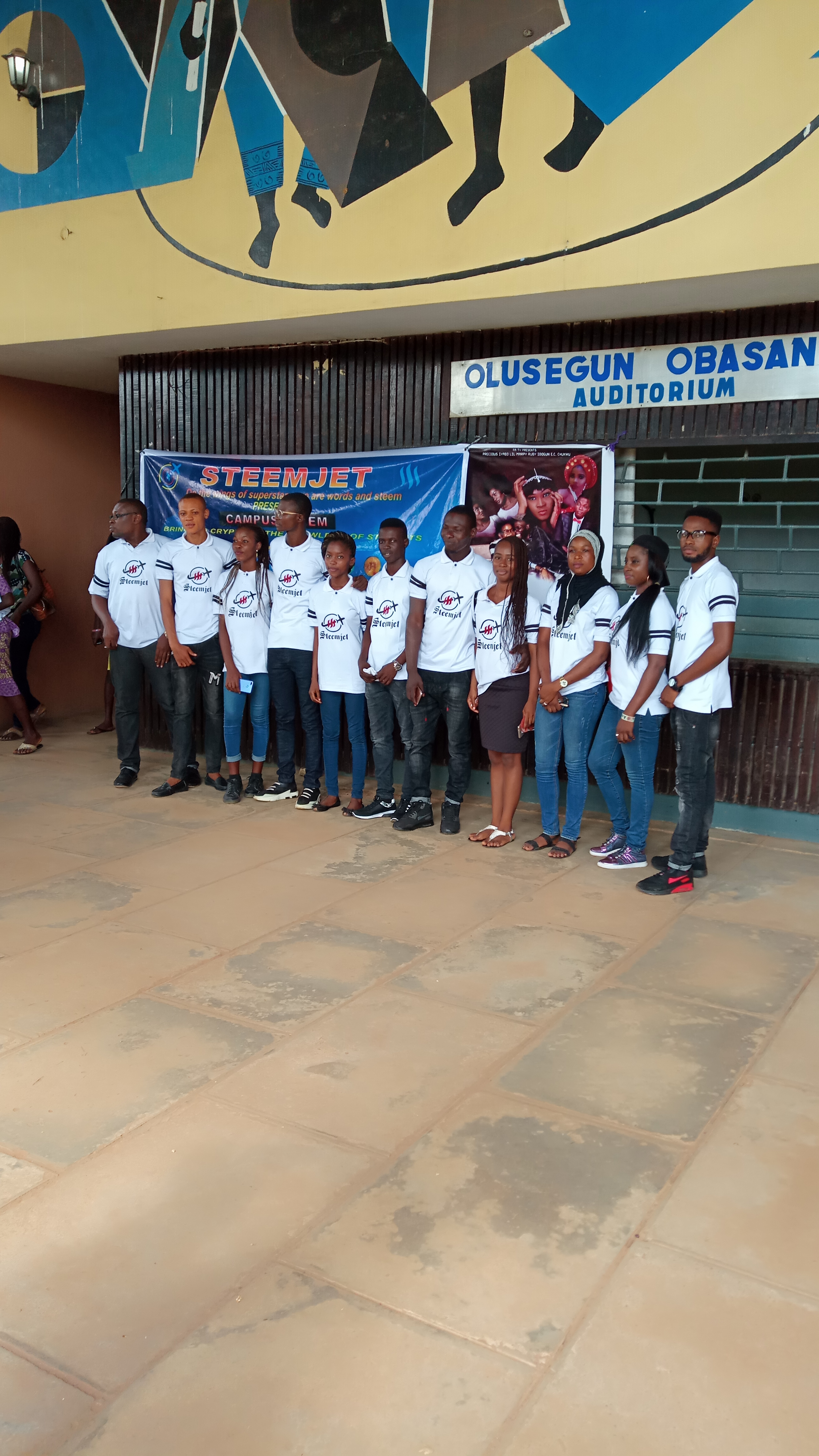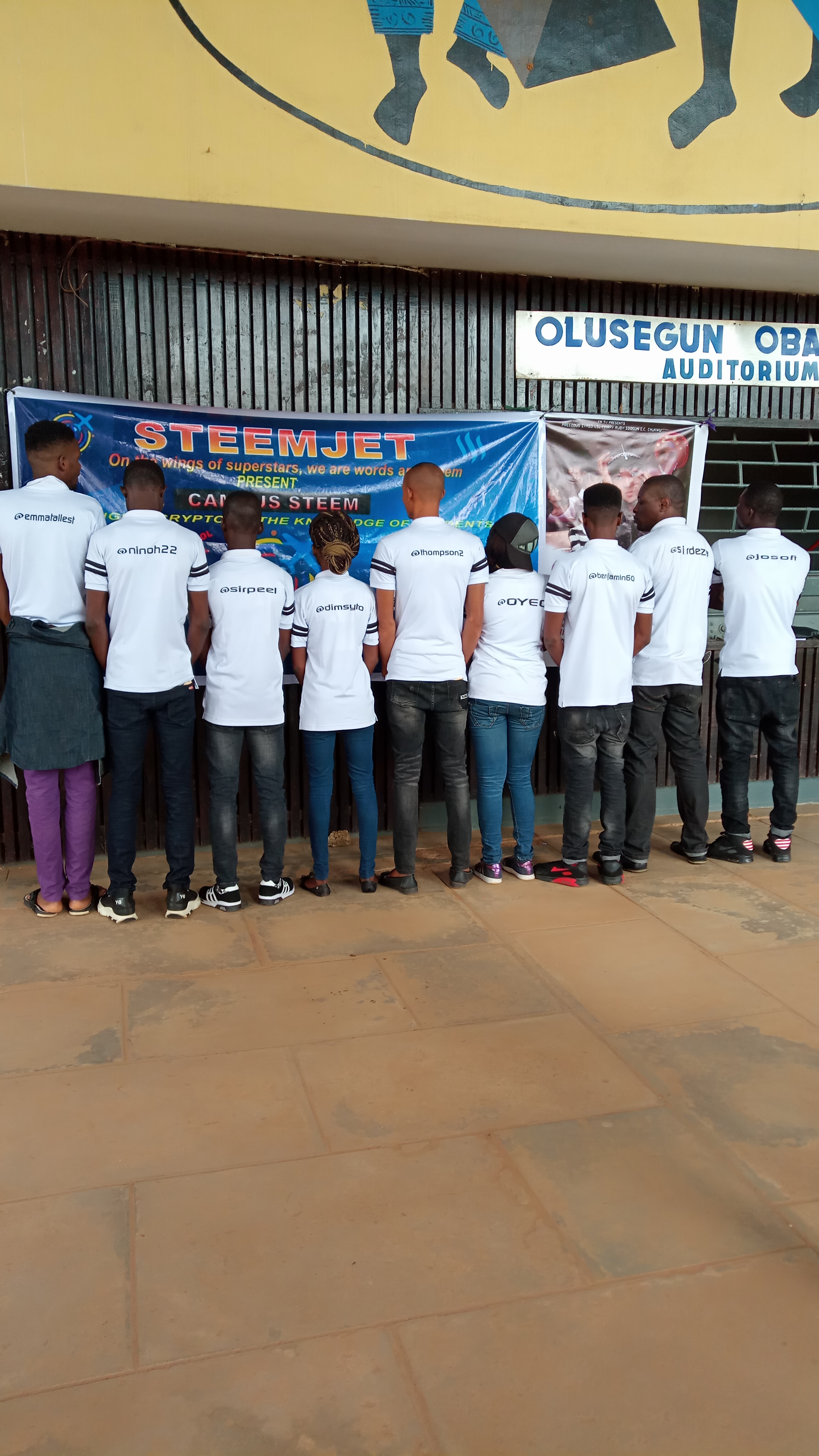 I introduce to you SteemJet Campus STEEM , we are team of 10 delegates of the SteemJet Spaceforce members from different states in Nigeria (background), and we storm 4 University campuses in western part of Nigeria with the message of steem, creating awareness while teaching the benefits of steem and crypto.