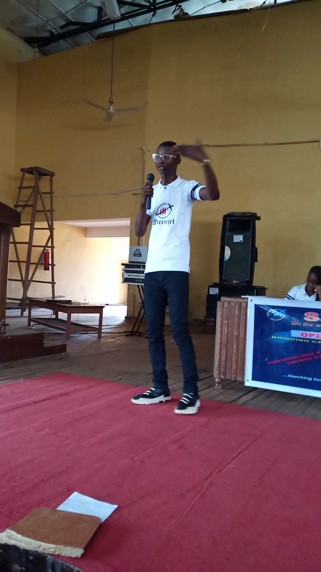 @benjamin60 singing for steemjet in the presence of the students on the seminar day.