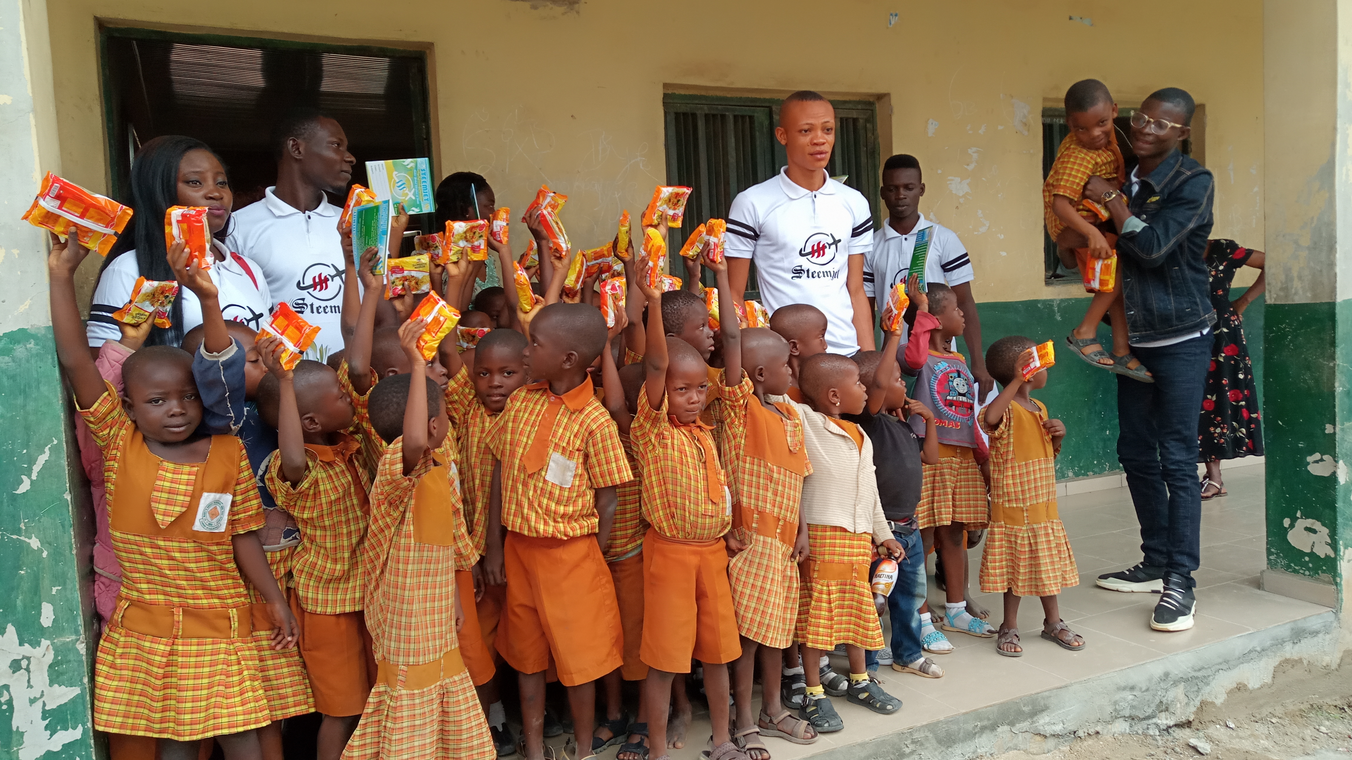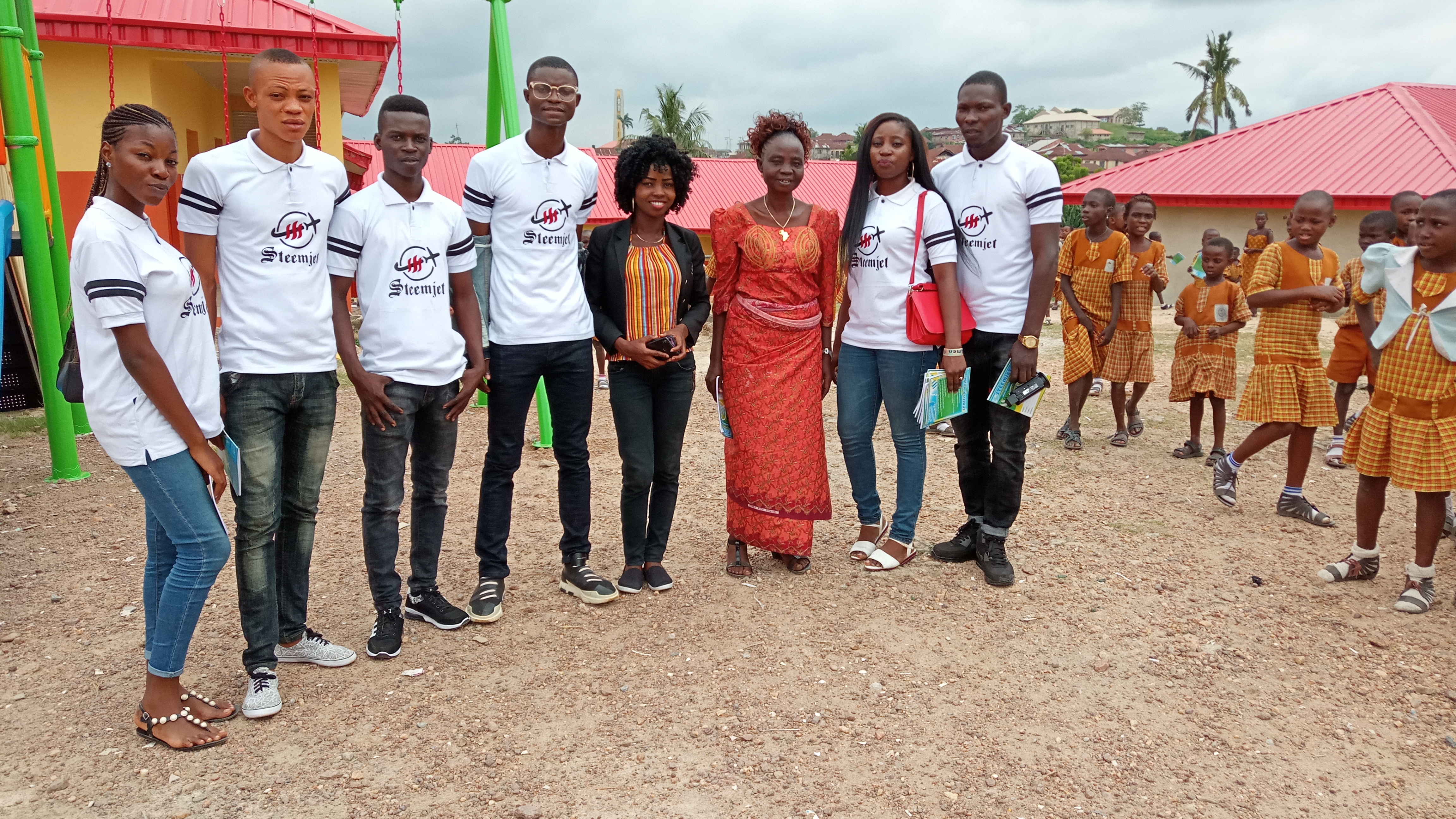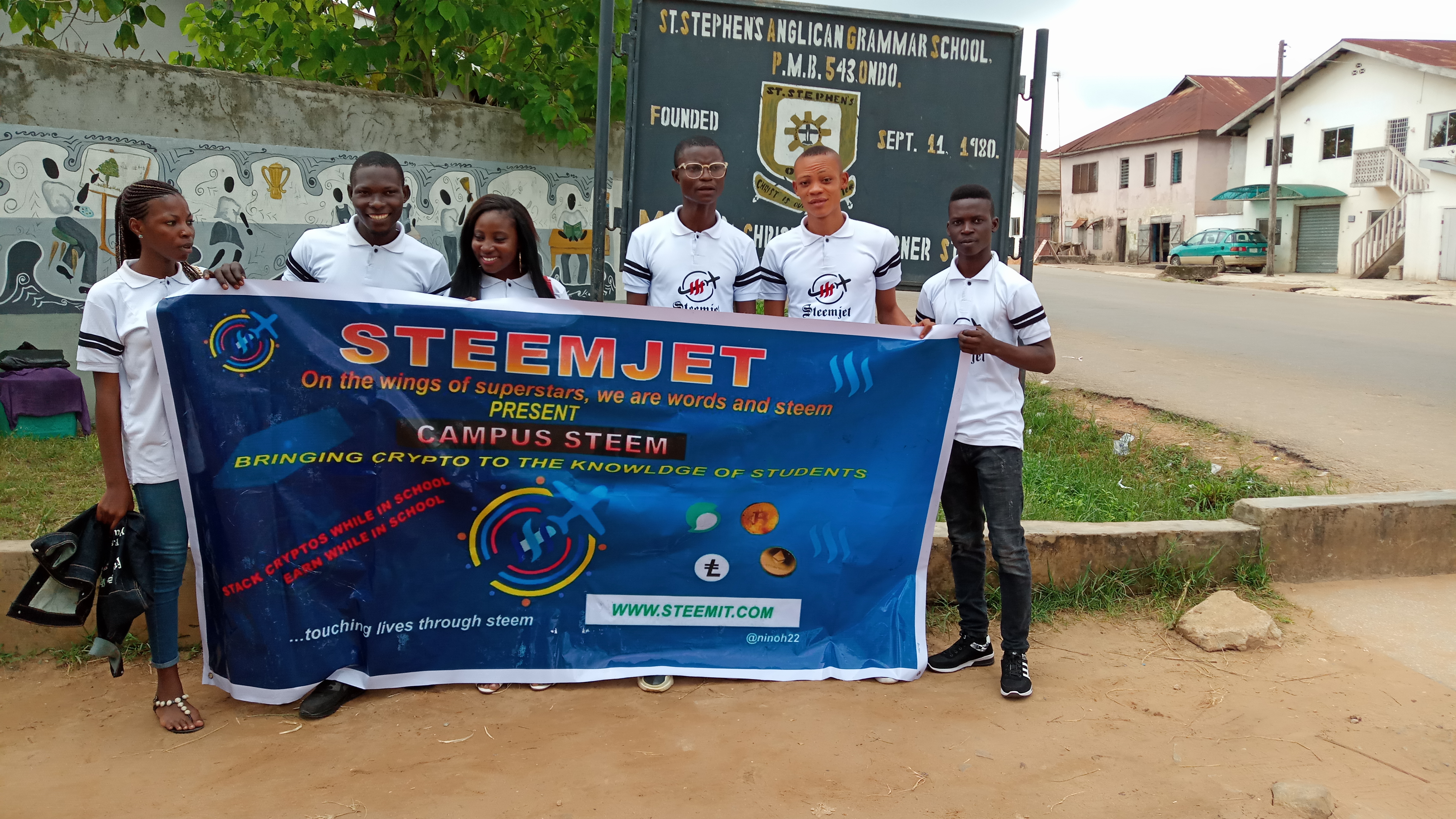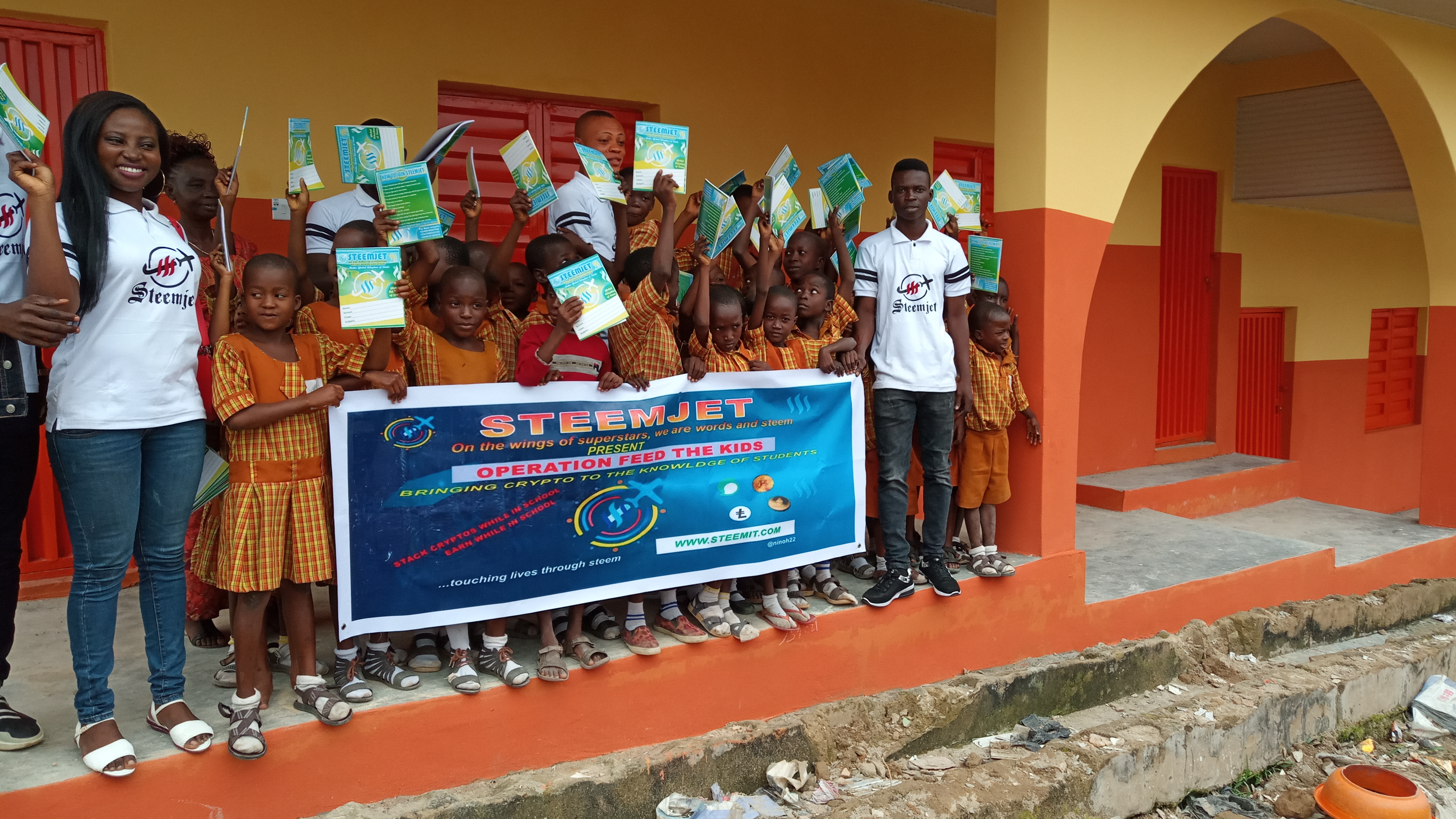 I introduce to you SteemJet Operation feed the kids , we are team of 10 delegates of the SteemJet Spaceforce members from different states in Nigeria (background), and we stormed 1 primary school and 1 secondary school in western part of Nigeria with the message of steem, creating awareness while teaching the benefits of steem and crypto(olivia and the superstar)