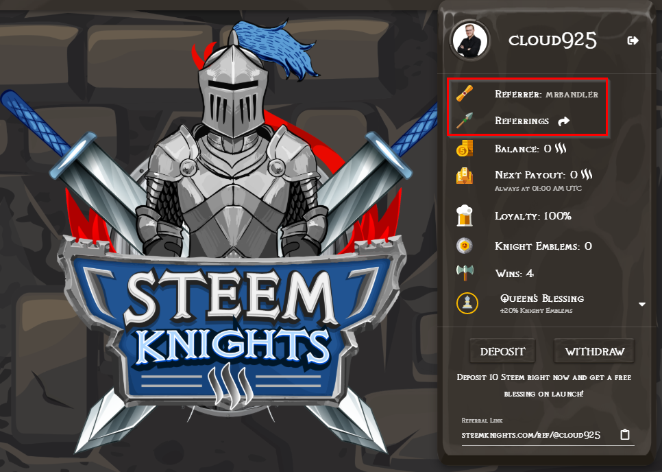 Some of you requested the feature to list the players who followed your call to SteemKnights. We have spared no cost and effort to make this possible as fast as we can. That means you can now check both your referred users and who has referred you in your profile overview. Maybe you can get in touch on our Discord and thank each other.
