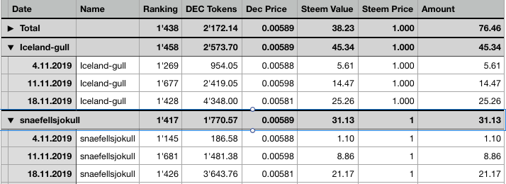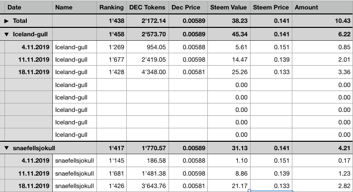 These are weekly figures and these are numbers that are small for now even though there are other accounts that might be performing a lot better on higher tiers these do provide a nice bonus. DEC was the saviour of the game and made it really take off even in a bear market at bottom prices.