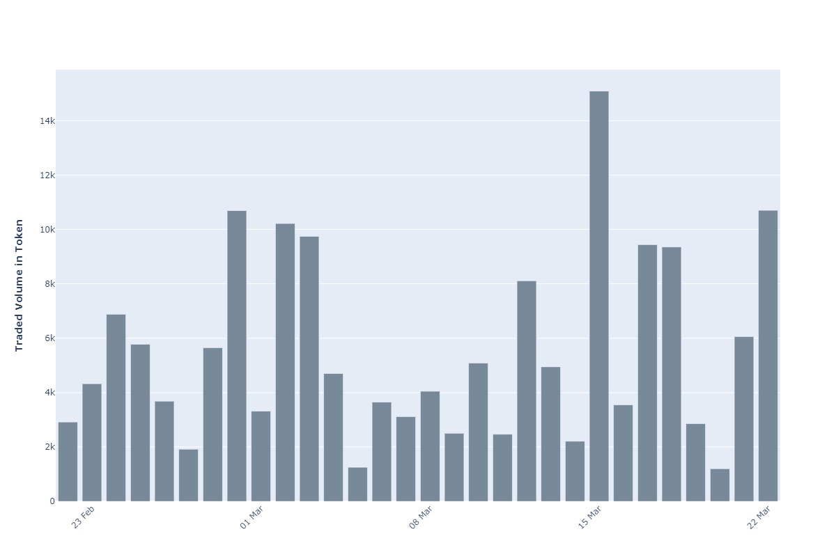 The following chart will show you the volume of token been traded for the same time frame.