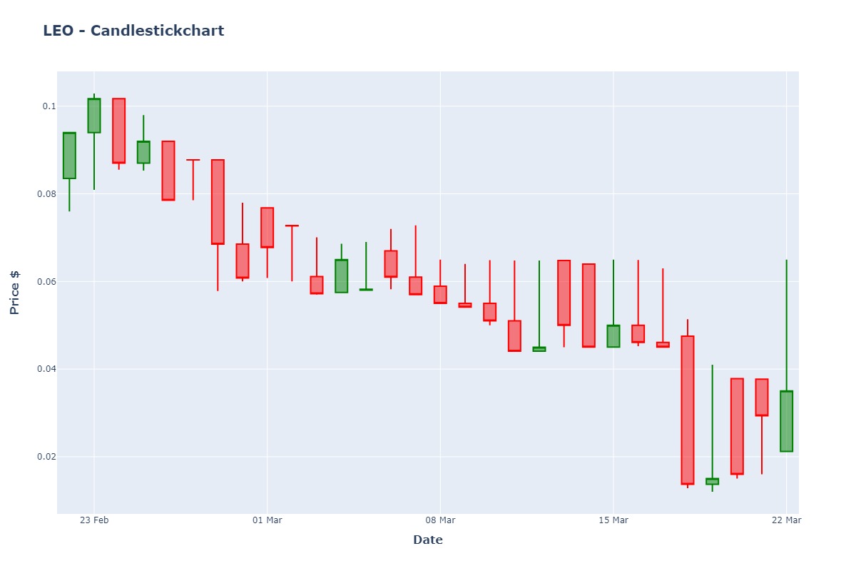 For the chart below, I did issue data from Feb 22th 2020 until Mar 22th 2020 at 12 PM/noon. At this time of yesterday, this token had an opening price of 0.021201, with a day-high of 0.065 and a day-low of 0.0212. The closing price was at 0.035.