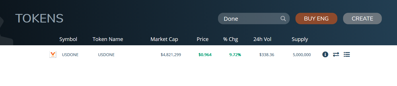 Go to tokens and type in DONE. It brings up DONE and USDONE.