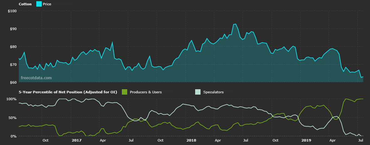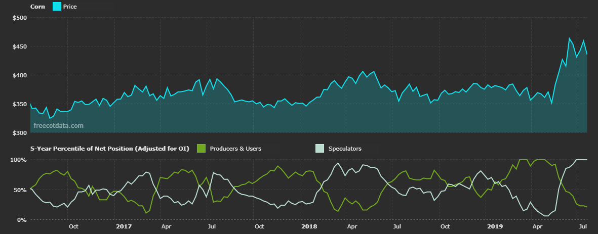 COT report measures positions of all commercials and speculators who usually take the opposite side. If either is on
