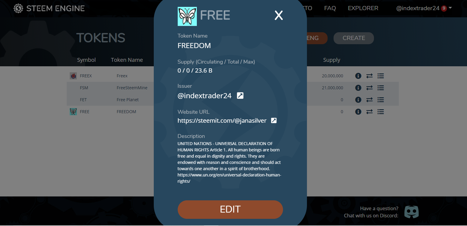 Das ganze steht noch am Anfang. Der Token der Freiheit existierte bislang nicht auf der Steemengine.