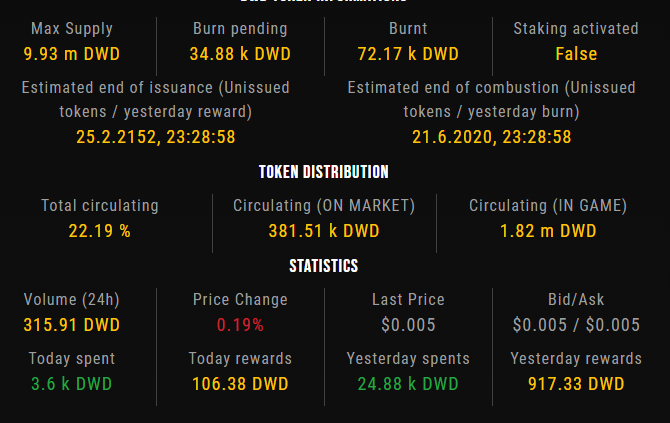 What is very important to understand now is, that if you look at the yesterdays rewards number this is the total amount of DWD that are newly minted that day.