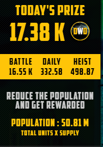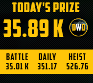 How much? Simple maths: 917.33 total - 332.58 daily - 498.87 heist = 85.88 DWD battle rewards yesterday.