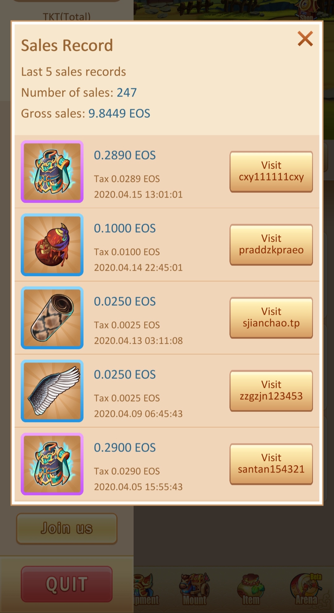 Another one day with good sales at Eos Dynasty for my account.I sell to materials in a very good price and my journey goes on...