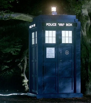 The four of them ran into a thicket and through into a clearing where the Dr had said the transport would be. However there was nothing except what looked like tiny dark blue house with the word 'POLICE BOX' written on it.