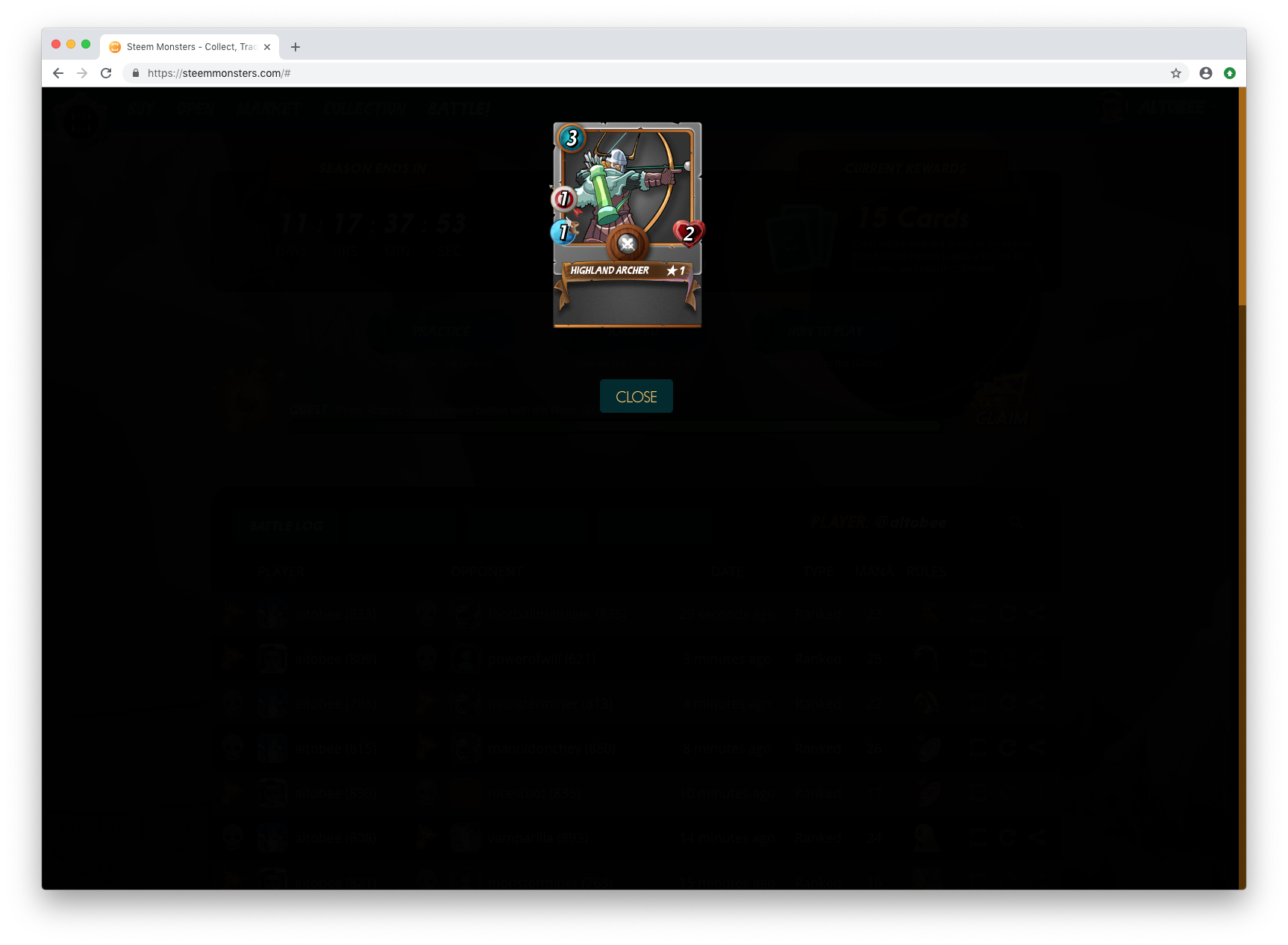 Ich habe wenigstens das Glück, dass mein Deck schon mittelstark ist ( alles lvl 4-5) und dass ich grade so in gold mithalten kann. Da bekomme ich 10 karten, was schon ziemlich cool ist, aber wenn ich mir vorstelle, dass ich in silber oder Bronze wegen der stärke bzw schwäche meines Decks gefangen wäre, müsste ich heulen bei den rewards.