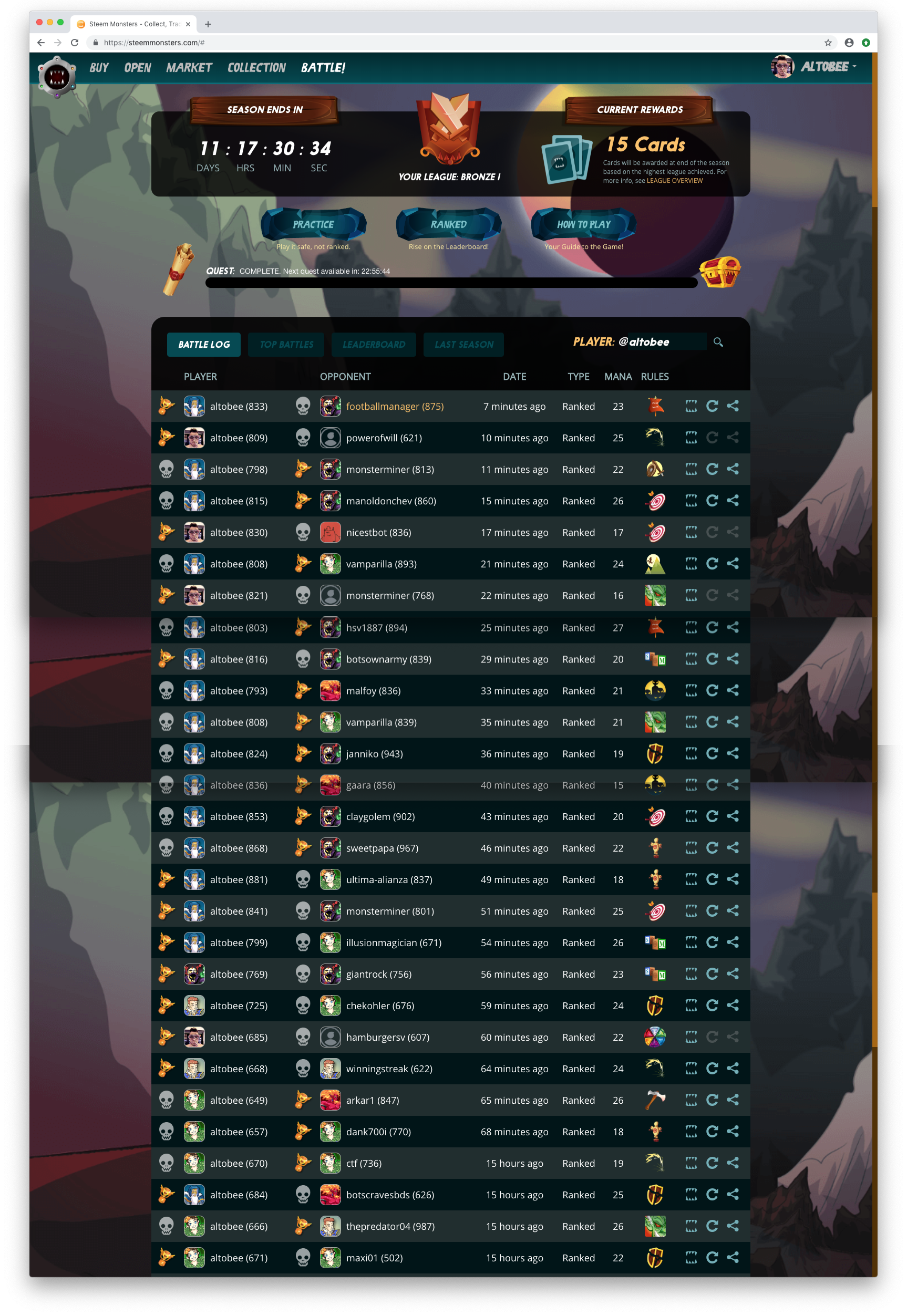 Boa watt nervig! Um ehrlich zu sein weiß ich nicht ob mich diese Ein-Karten-Rewards langfristig motivieren werden das Spiel zu spielen. Ich hatte nun eine - mit Verlaub gesagt - beschissene Quest mit meinen Unterskillten Earth Splinters wo ich mir die Zähne ausgebissen hab und schlussendlich eine neue Quest angefordert hab. Danach kam Water Splinters die eigentlich sonst ganz gut funktioniert haben, heute aber auch ständig gegen diese Death-Spinner versagt haben. Aber seht selbst.