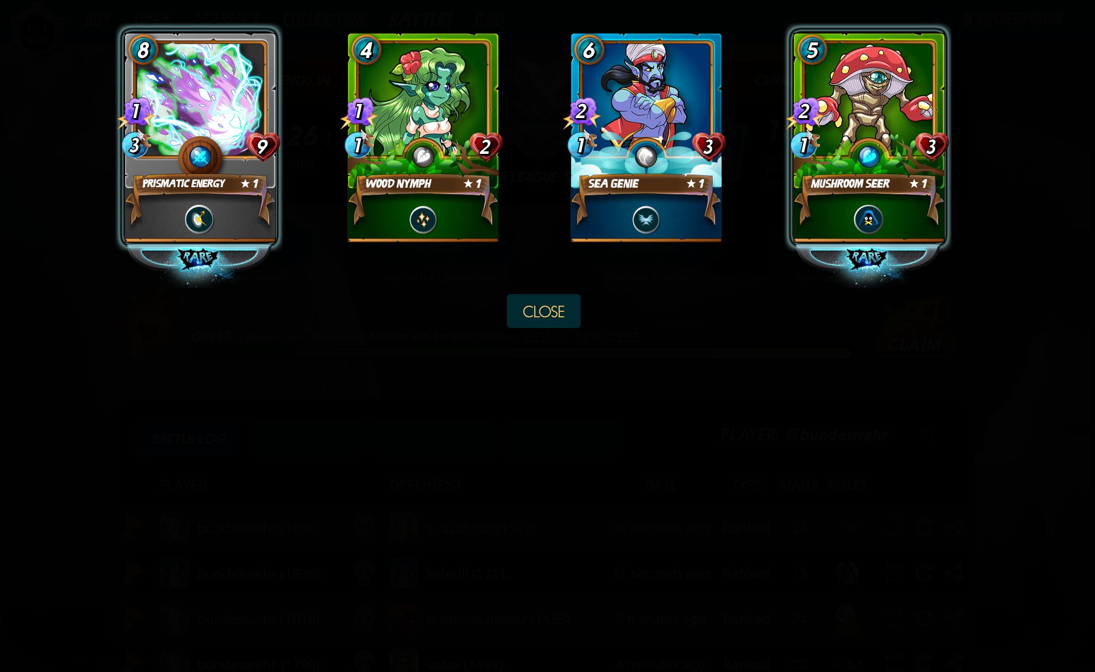The Quest today was to win 5 ranked Battles with the EARTH Splinter