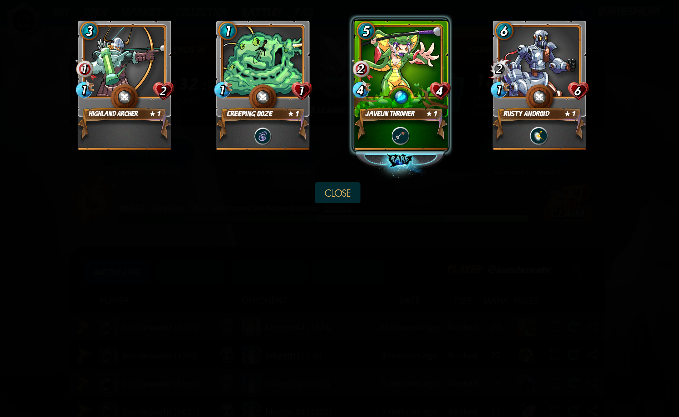 The Quest today was to win 5 ranked Battles with the DEATH Splinter