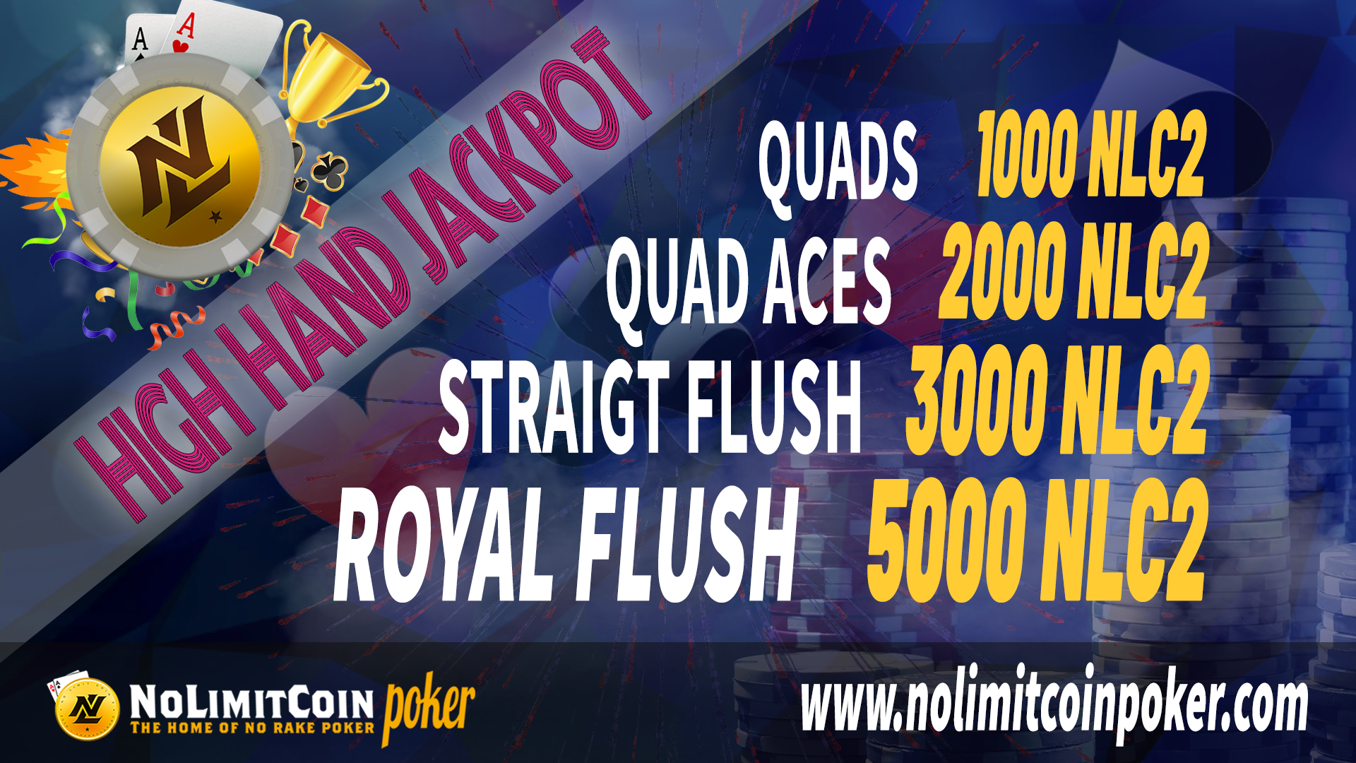 Right now, if you are playing over at NLCPoker, you can win up to $50.00 in free NLC2 just by taking a screenshot of any hand you get that's a Four-of-a-Kind, 4 Aces, a Straight Flush, or a Royal Flush!