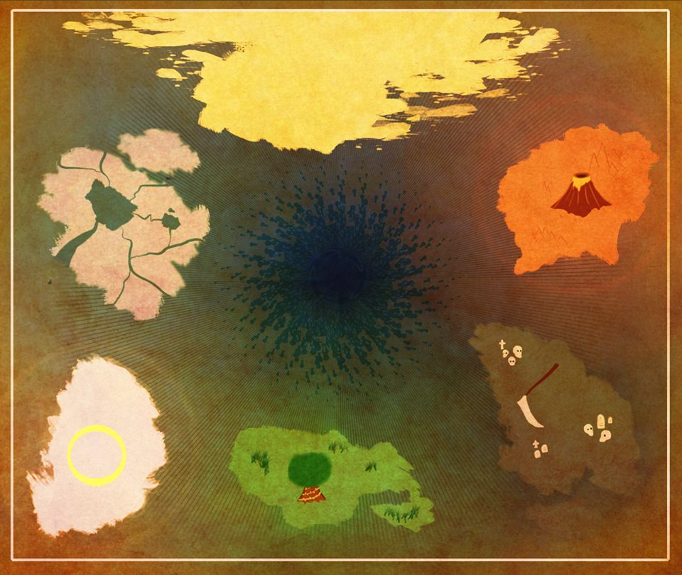 I have chosen to place water opposite fire due to their natural polarity. Fire is next to death, as fire commonly symbolises DEATH AND KILLING, while water is often associated with life. Earth is between life and death, serving as a barrier between Heaven and Hell.