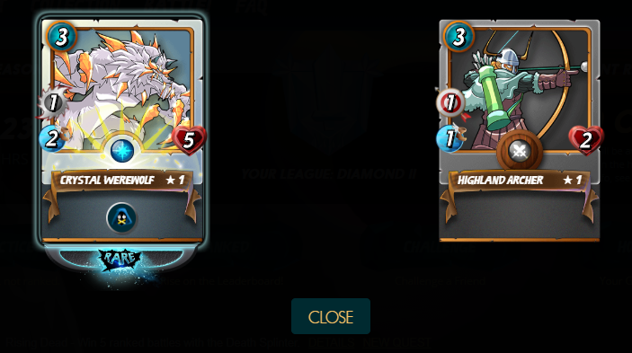 Todays Steemmonster Rewards - Diamond 2 Leagueelg (31)in #steemmonsters • 7 years ago Today I got death splinter on first try. This is good splinter for me. My cards were ok and free so no complaints from me. #steemmonster #reward #cards #steem