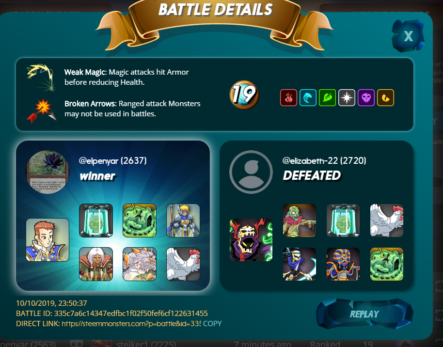 https://steemmonsters.com?p=battle&id=335c7a6c14347edfbc1f02f50fef6cf122631455&ref=elpenyar