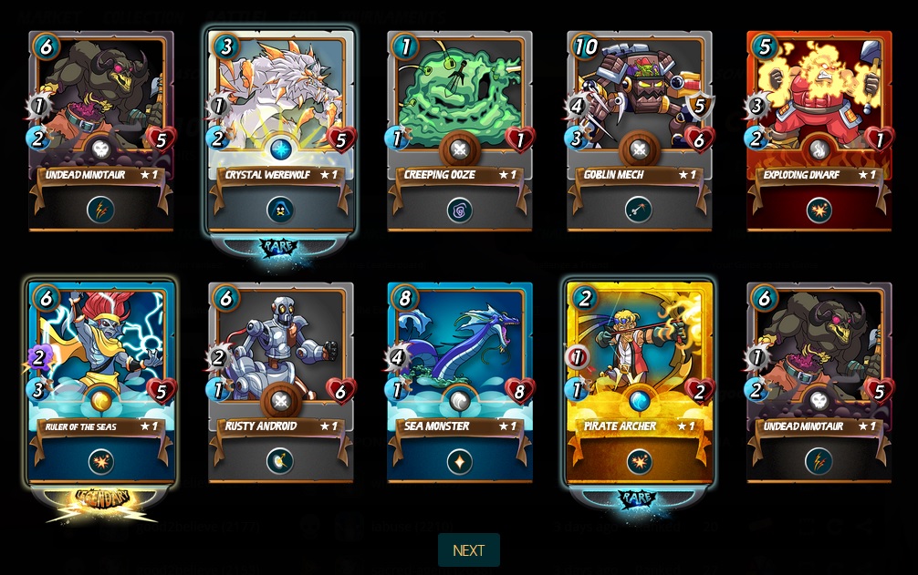 我在Steemmonsters第十三季度的26张奖励卡good2believe (51)in #steemmonsters • 7 years ago 喵喵喵,第十三季度的Steemmonsters战斗,终于在昨天拉下序幕。。。 这一季嘛,我也在比赛结束的前4天,优先达到金2级别! 大家可以看到,每当我达到金2后,我就不再往上爬~ 那么,咱们废话不多说,一起来看看,我所获得的26张奖励卡: 第一组:这一组有一张史诗卡+三张稀有卡,还蛮好的~ 第二组:哇塞,左盼右顾,终于等到传奇卡的再次回归!!! 第三组:两张稀有卡,还蛮不错鸭~ 从第八季度开始,连续五个季度后,我总算获得一张传奇级别卡,雅虎! 我还要继续打斗升级,大家一起加油呗~ #peakmonsters-cn #steemmonsters-cn #team-cn #cn-malaysia
