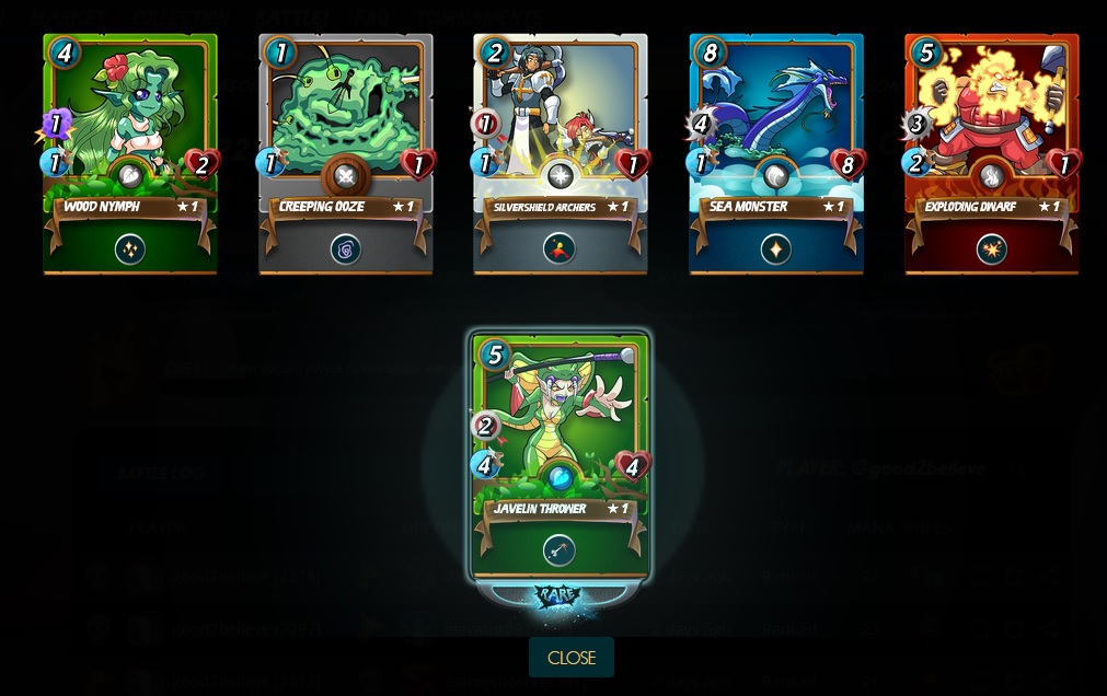我在Steemmonsters第八季度的26张奖励卡good2believe (51)in #steemmonsters • 7 years ago 各位Steemmonsters玩家好, 不知不觉,第八季度的SM在前天完毕了... 坦白而言,这个季度打起来,真的有点力不从心。 有可能是太多的强者,霸占着钻石等级,让我都不能打上去 XD 幸亏的是,我至少达到金2级别,被奖励了26张任务卡。 以下是我的开卡过程: 第一组:一张传奇大绿头 + 三张稀有卡,棒棒达! 第二组:这组有点逊色,只有一张稀有卡 :P 第三组:这也是中规中矩,一张稀有卡而已 lol 最新的第九季度已经开打,大家继续努力爬楼吧~ #peakmonsters-cn #steemmonsters-cn #cn-malaysia #team-cn