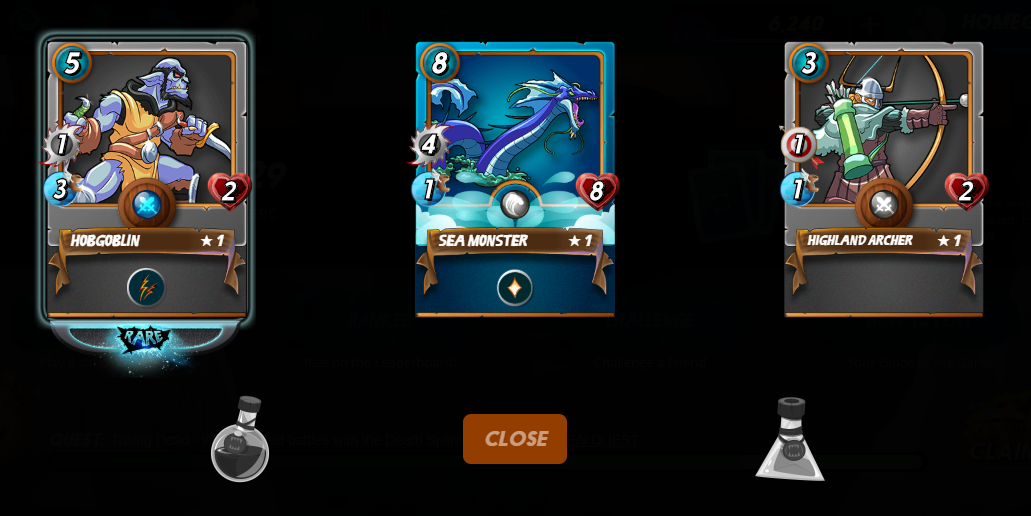 Splinterlands daily rewards - A bit lucky today 🙃🙃homeginkit (56)in #steemmonsters • 7 years ago Hi summoners! I have had a little bit of luck. I have received a rare card. HOBGOBLIN Maybe tomorrow I will have more luck. 🙇I HOPE IT🙇 #splinterlands #gameplay #blog #gaming