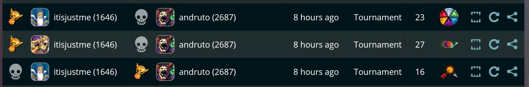 After losing my first battle against @andruto, I thought it would be over in the first round already. But then a miracle happened, and I won the next two battles.