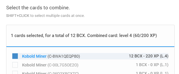 - 카드 합칠때 총 BCX와 카드 몇개를 합치는지 보여줌.