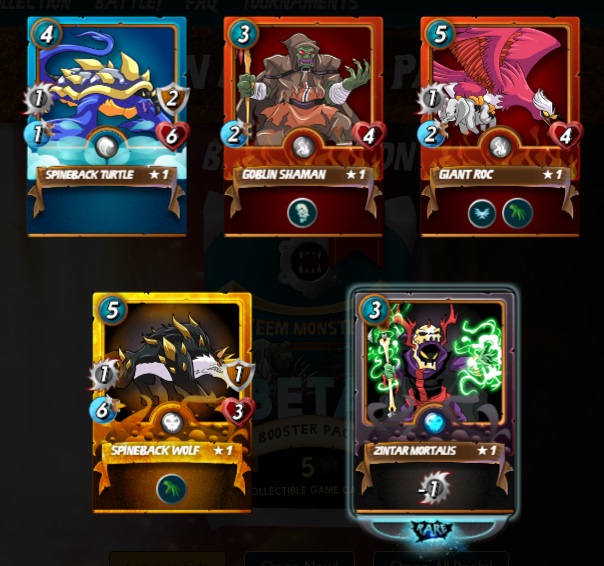 My luck didn't end there. When I opened the pack I got a few common cards (much appreciated and needed) but also turned over a Zintar Mortalis Death splinter summoner! In case you are new to Splinterlands, the summoners form the primary bottleneck in this game. You can level up your monster army as high as you want but they will only be usable at the level your summoner is capable of handling. Combining doubles of the same card is how you level them up. This put me at the point where I was able to bring my Death summoner up to the next level.